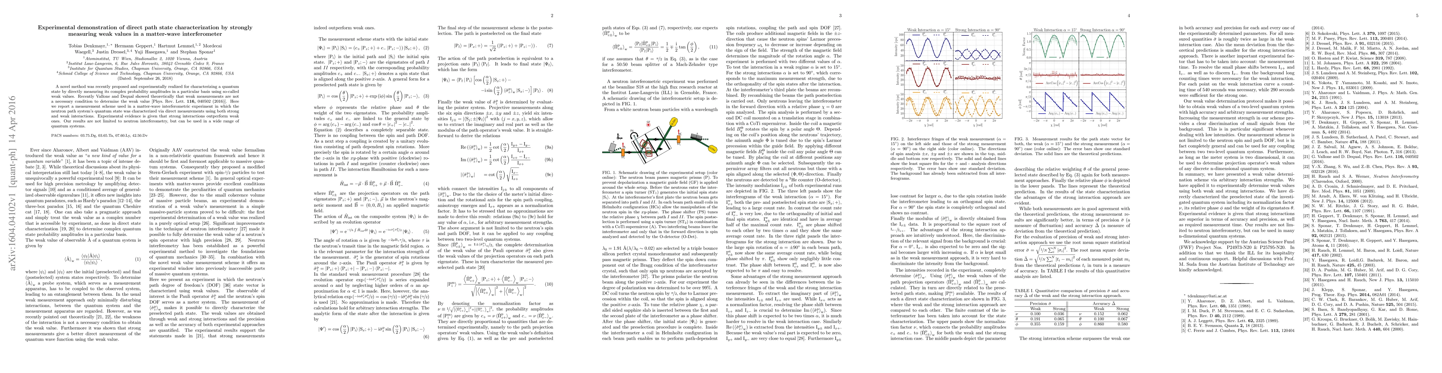 A novel method was recently proposed and experimentally realized for characterizing a quantum state by directly measuring its complex probability amplitudes in a particular basis using so-called weak values. Recently Vallone and Dequal showed theoretically that weak measurements are not a necessary condition to determine the weak value [Phys. Rev. Lett. 116, 040502 (2016)]. Here we report a measurement scheme used in a matter-wave interferometric experiment in which the neutron path system's quantum state was characterized via direct measurements using both strong and weak interactions. Experimental evidence is given that strong interactions outperform weak ones. Our results are not limited to neutron interferometry, but can be used in a wide range of quantum systems.