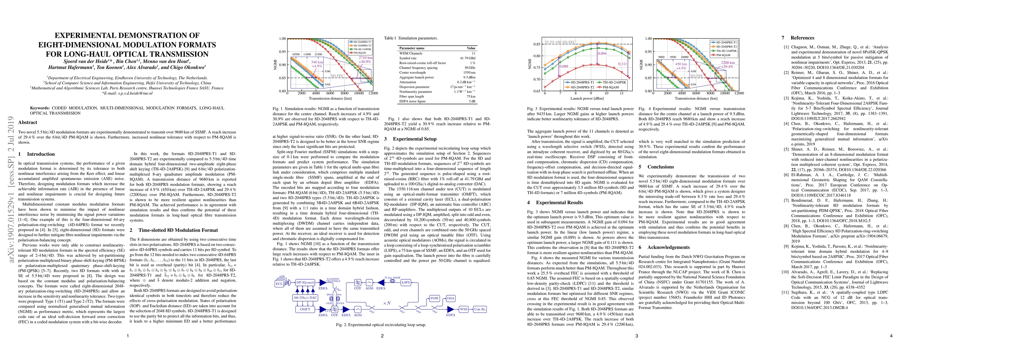 Two novel 5.5 bit/4D modulation formats are experimentally demonstrated to transmit over 9680 km of SSMF. A reach increase of 29.4% over the 6 bit/4D PM-8QAM is shown. Furthermore, increased nonlinear tolerance with respect to PM-8QAM is shown.