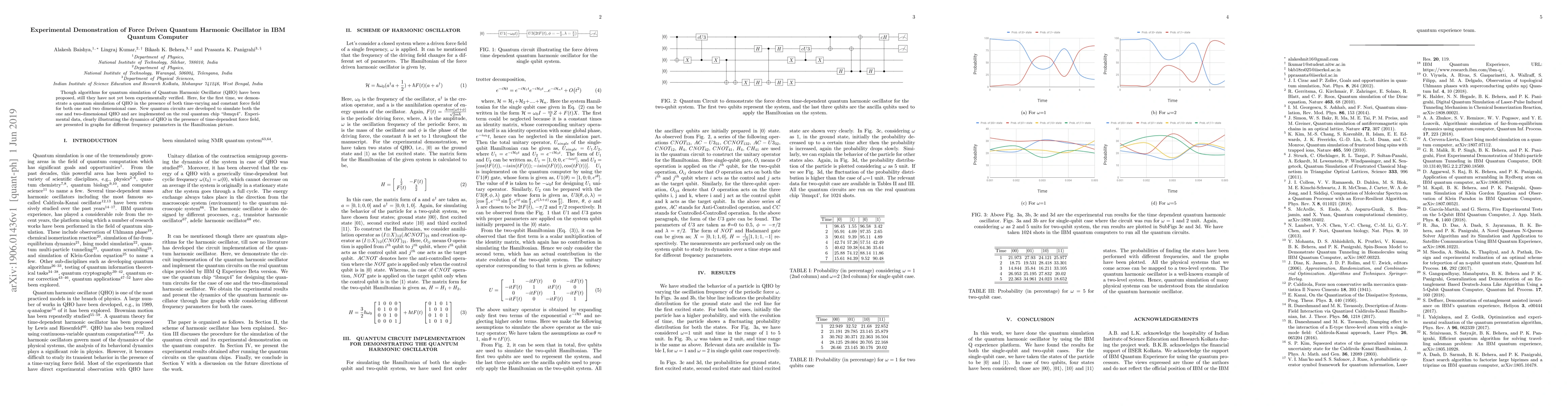 Researchers demonstrate the first experimental simulation of a quantum harmonic oscillator on an IBM Quantum Computer, successfully simulating both one- and two-dimensional cases with time-varying force fields.