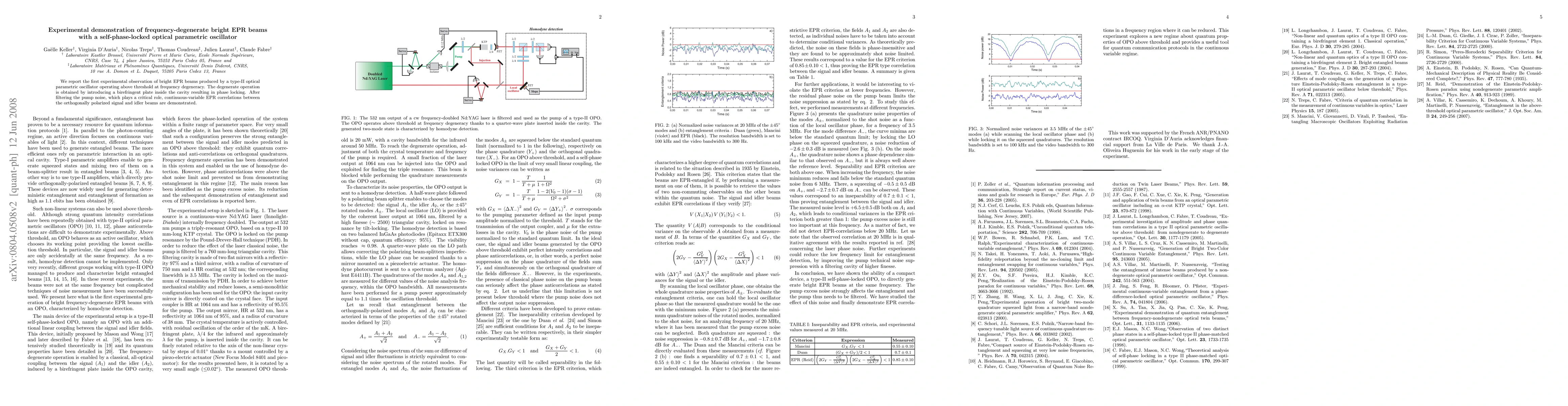 This paper demonstrates the first experimental observation of bright EPR beams from a self-phase-locked optical parametric oscillator operating at frequency degeneracy, achieved by inserting a birefringent plate. The study also shows continuous-variable EPR correlations between the orthogonally polarized signal and idler beams after filtering out pump noise.