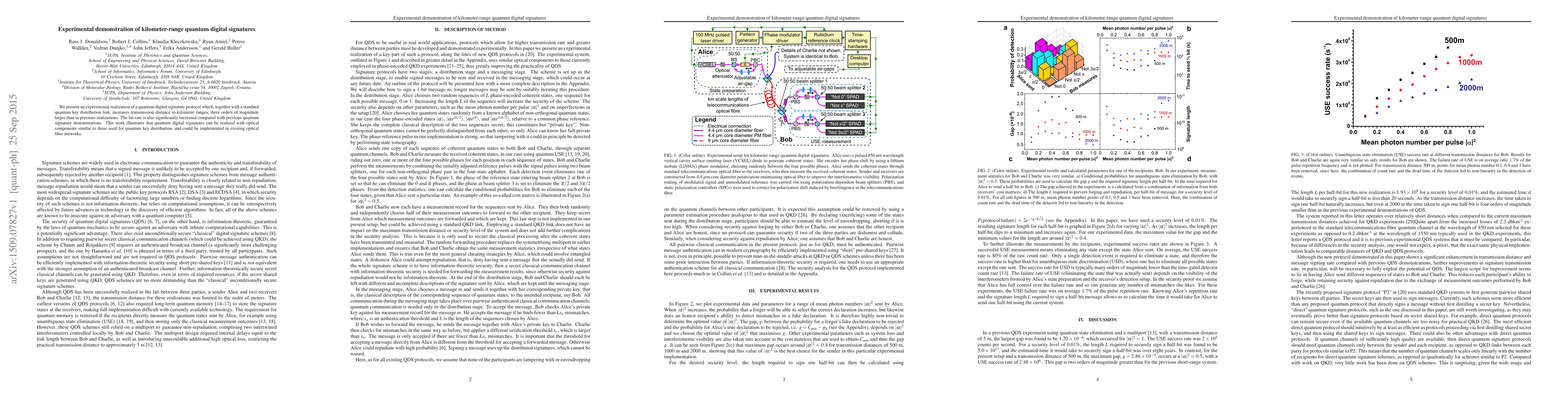 Researchers successfully demonstrated a quantum digital signature protocol that can transmit signals over distances of up to 1 kilometer, significantly increasing the transmission range threefold.