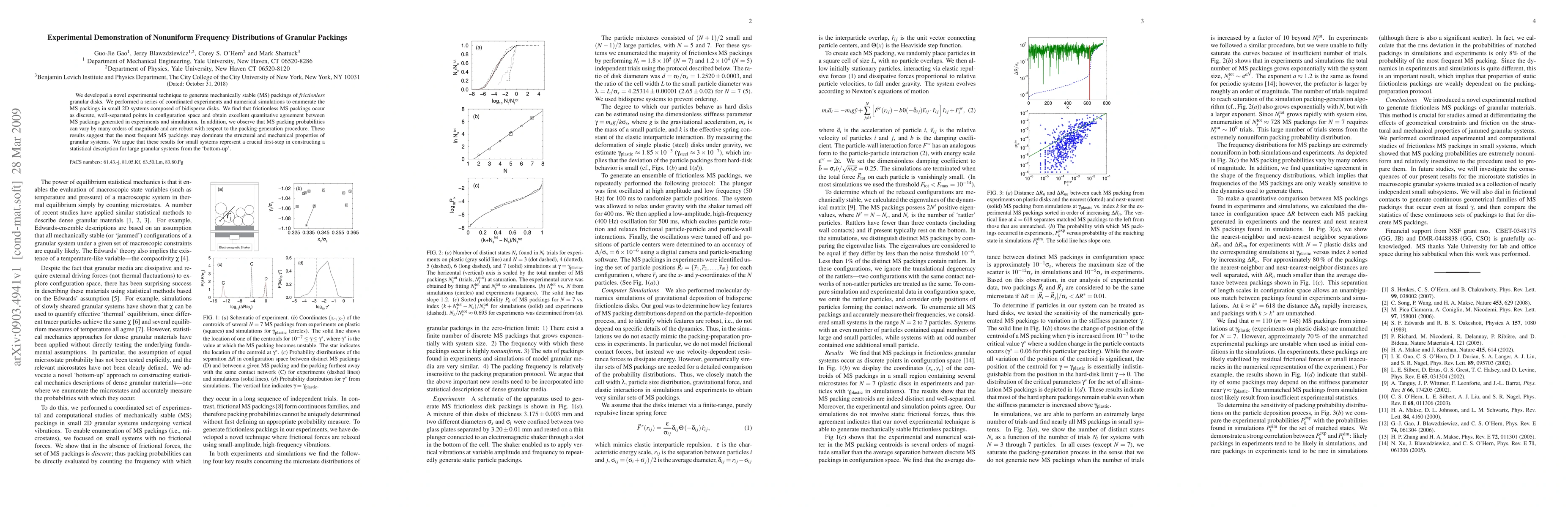 This paper presents an experimental technique to generate mechanically stable granular packings of frictionless disks, revealing nonuniform frequency distributions in packing configurations. The study shows strong agreement between experimental and simulated results, indicating that dominant packings significantly influence granular systems' properties.