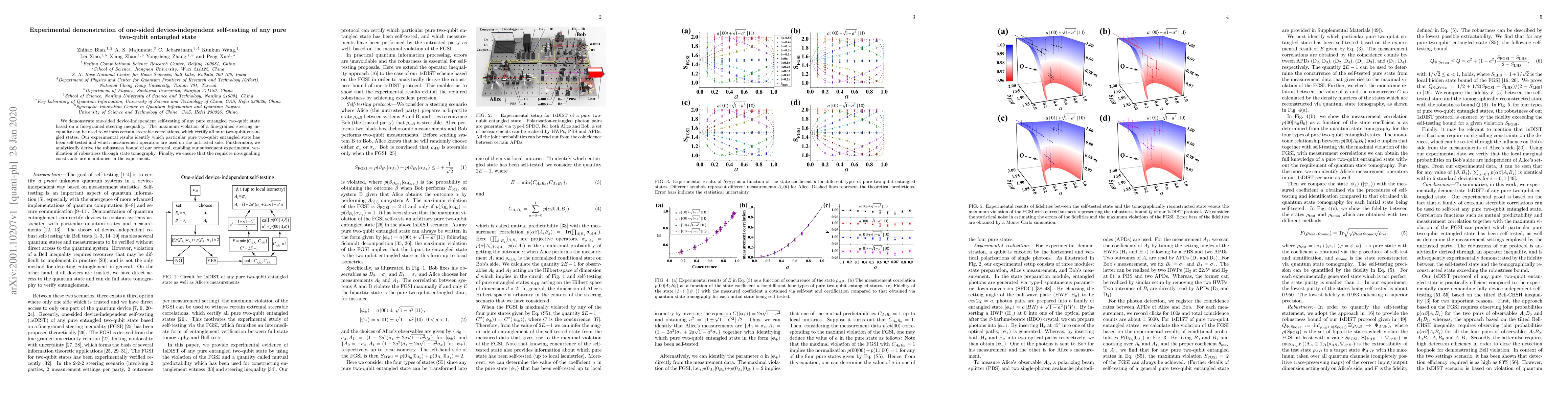 This paper demonstrates one-sided device-independent self-testing of any pure two-qubit entangled state using a fine-grained steering inequality, certifying all such states through maximum violation. The experiment verifies robustness and ensures no-signalling constraints are upheld.