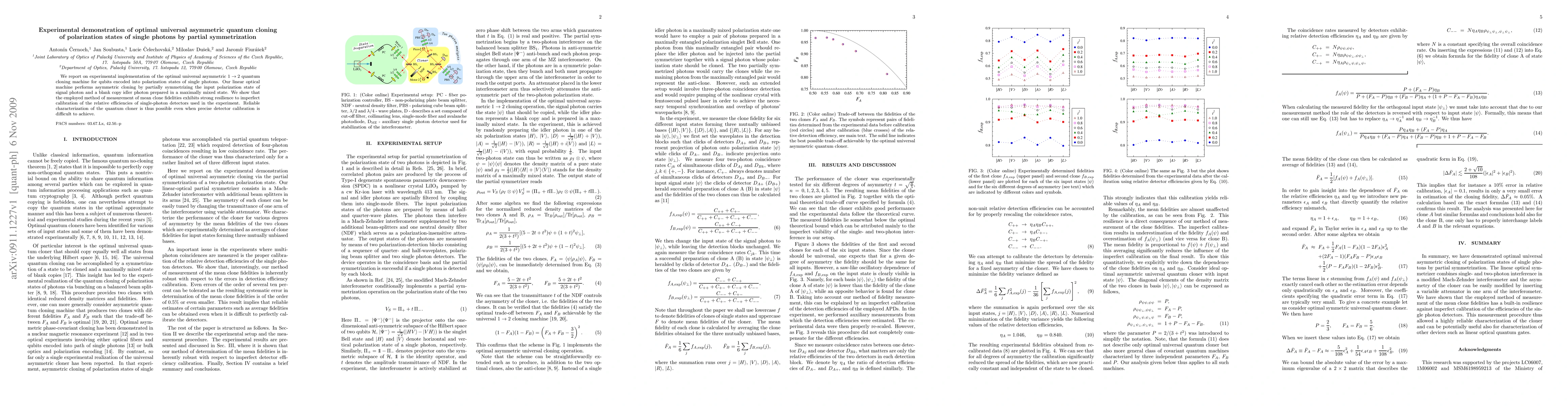 This paper demonstrates an experimental setup for optimal asymmetric quantum cloning of single-photon polarization states, achieving reliable performance through partial symmetrization and showing resilience to imperfect detector calibration. The method allows for accurate characterization even without precise detector calibration.