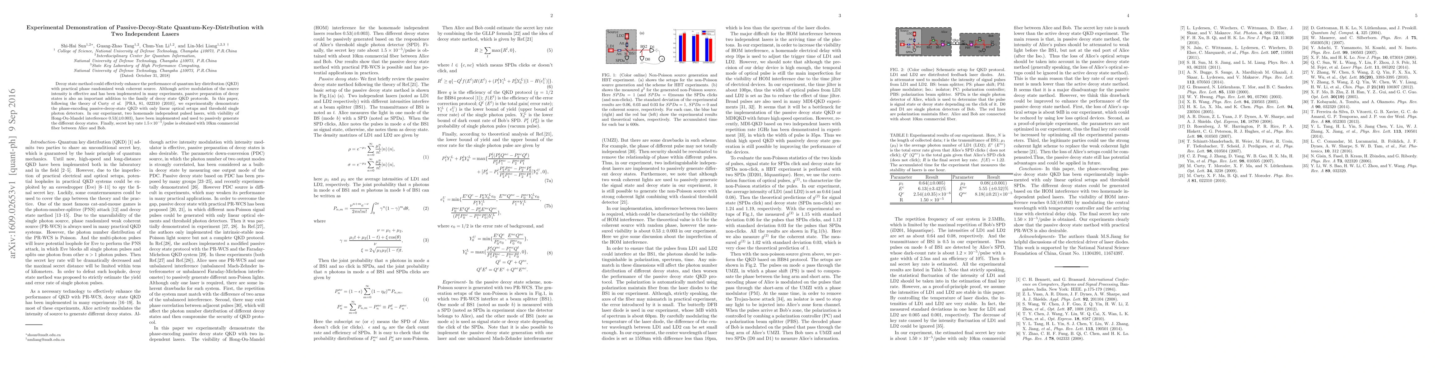 This paper demonstrates a passive-decoy-state quantum key distribution method using two independent lasers, achieving a secret key rate of $1.5\times 10^{-5}$/pulse over 10km fiber, showcasing the effectiveness of passive decoy state preparation in QKD protocols.