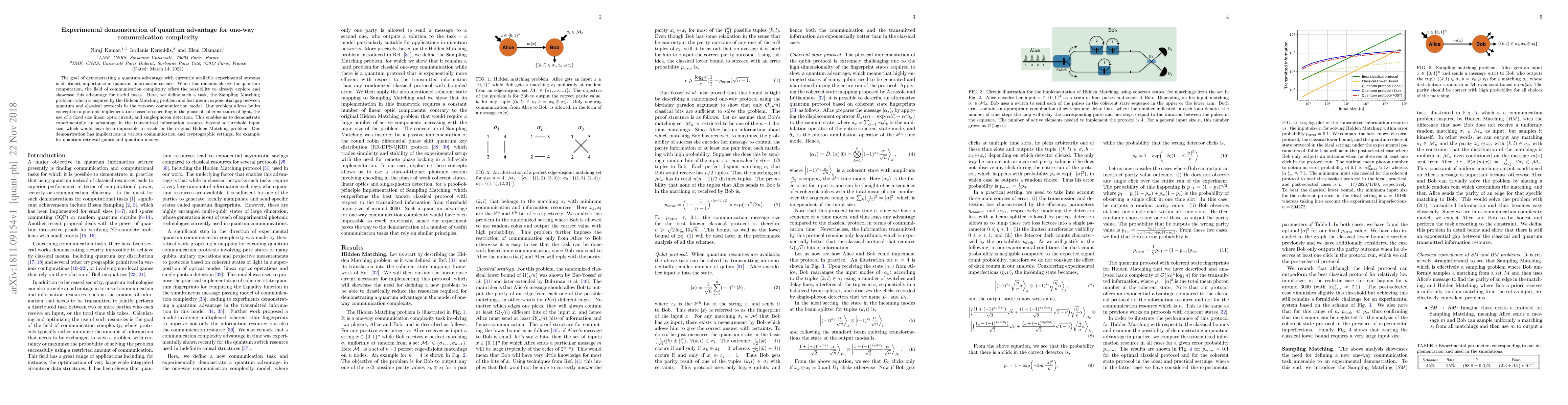 This paper demonstrates a quantum advantage in the Sampling Matching problem, showcasing an exponential gap between quantum and classical communication protocols in a one-way communication model. The experiment leverages photonic implementation and single-photon detection to achieve this advantage, with implications for quantum communication and cryptography.