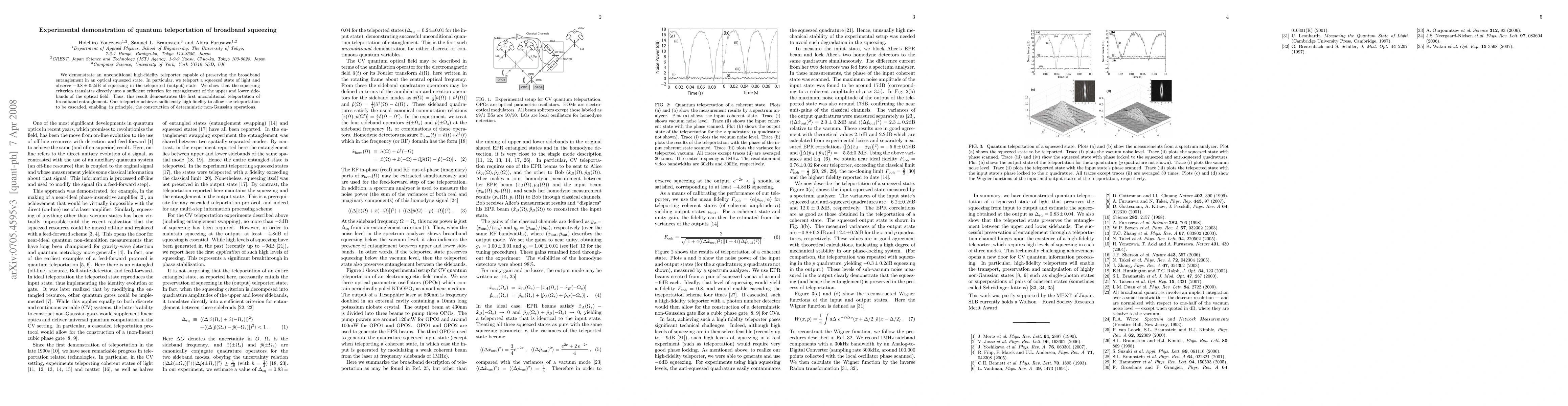 This paper demonstrates a high-fidelity quantum teleporter that successfully preserves broadband entanglement in optical squeezed states, achieving $-0.8 \pm 0.2$dB of squeezing in the teleported state. The teleportation method enables the cascading of operations, potentially leading to deterministic non-Gaussian operations.