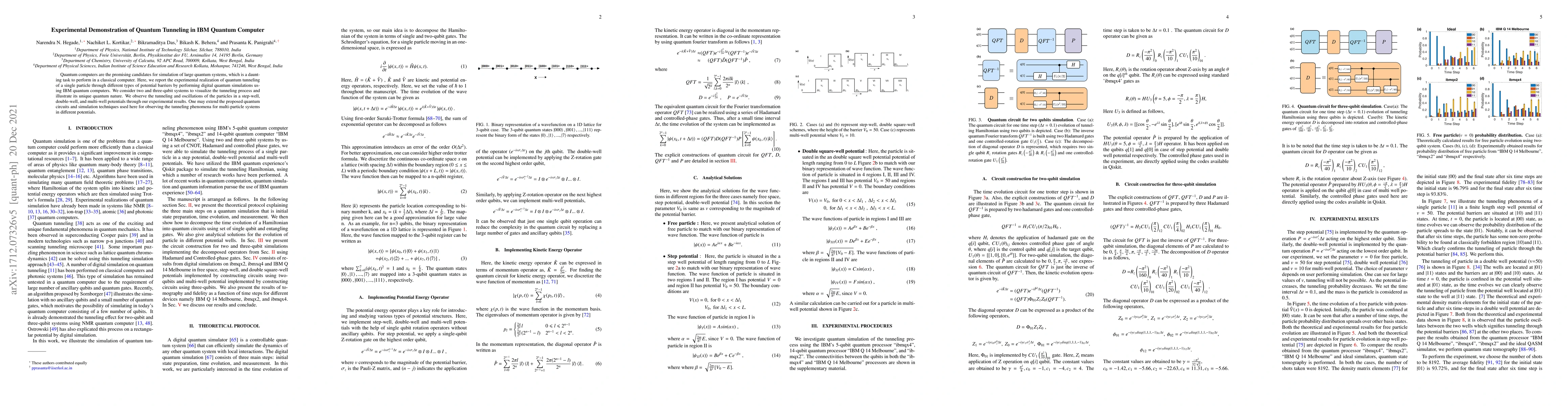 This paper demonstrates quantum tunneling of a single particle through various potential barriers using IBM quantum computers, showcasing the unique quantum nature via two and three-qubit systems. Experimental results reveal tunneling and oscillations in step-well, double-well, and multi-well potentials, highlighting the potential for extending these techniques to multi-particle systems.