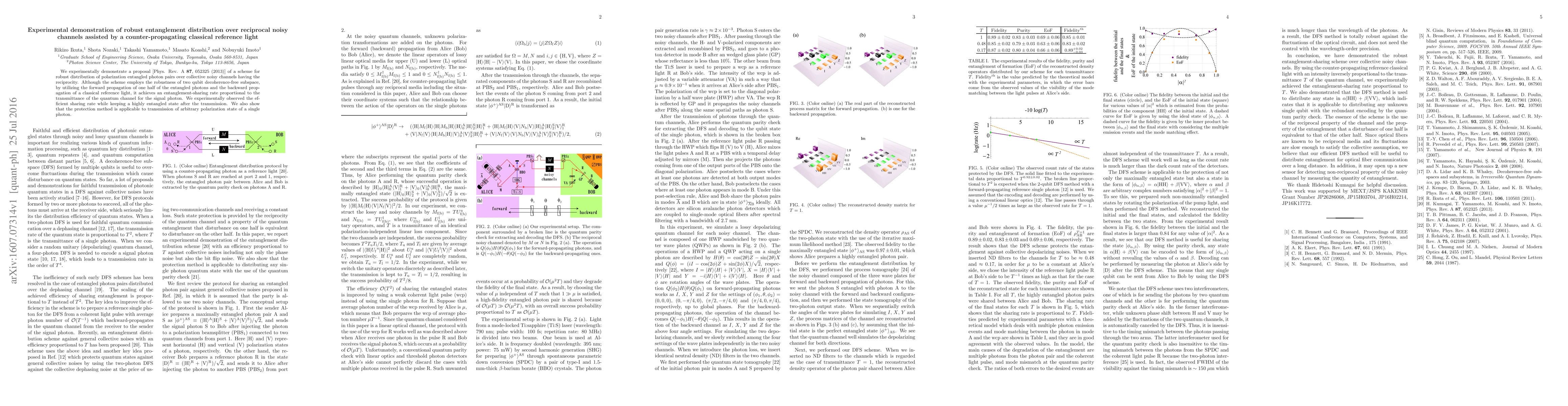 This paper experimentally verifies a scheme for robust entanglement distribution over reciprocal noisy channels using a counter-propagating classical reference light, achieving an entanglement-sharing rate proportional to the channel's transmittance while maintaining a highly entangled state. The method is shown to be effective for transmitting arbitrary polarization states of single photons.