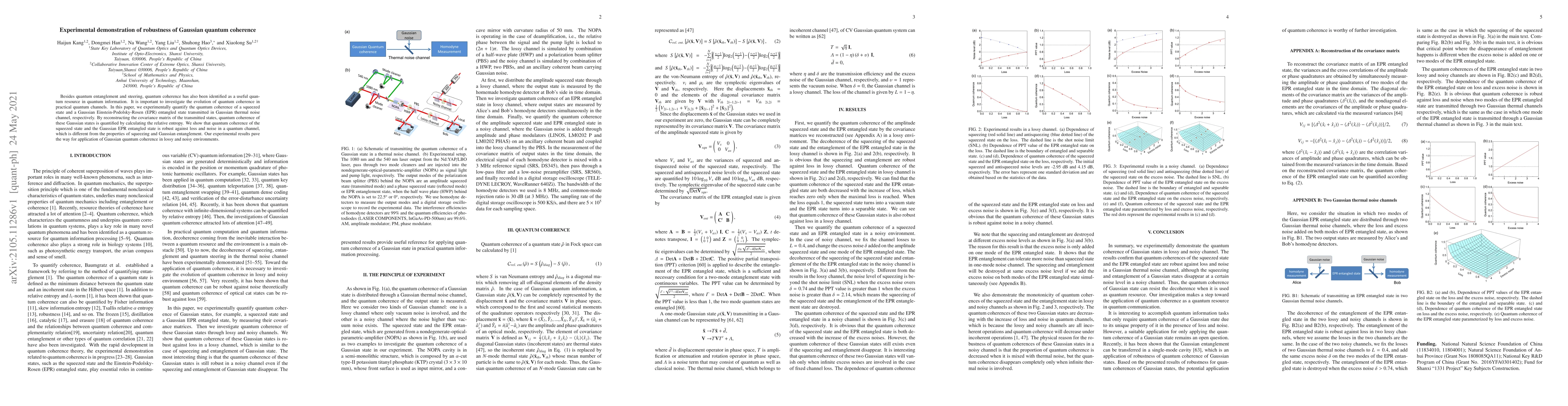 This paper experimentally demonstrates the robustness of Gaussian quantum coherence in lossy and noisy quantum channels. It quantifies the coherence of squeezed and Gaussian entangled states against noise by reconstructing covariance matrices and calculating relative entropy, showing that coherence maintains its properties differently from squeezing and entanglement.