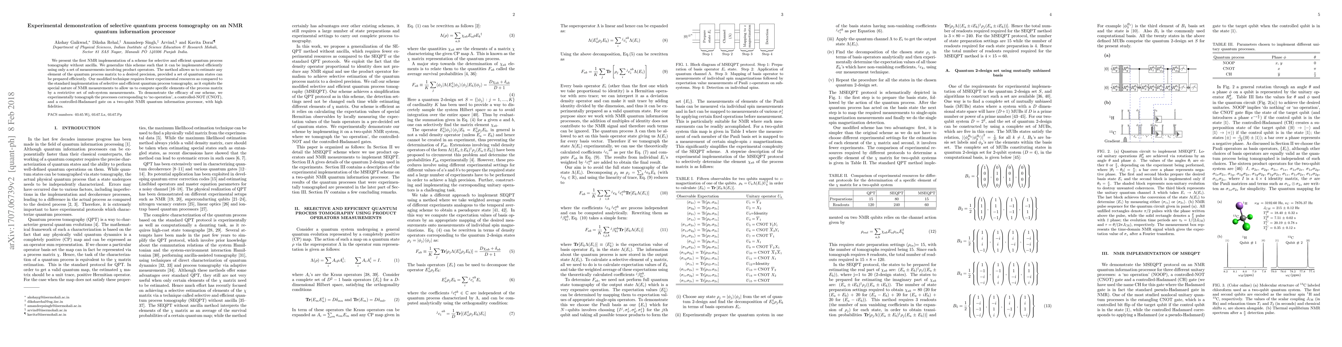 This paper demonstrates a novel NMR-based scheme for selective quantum process tomography requiring fewer resources than standard methods. The technique efficiently estimates quantum process matrices using a restricted set of measurements, achieving high fidelity in tomographing processes like `no operation', CNOT, and controlled-Hadamard gates.