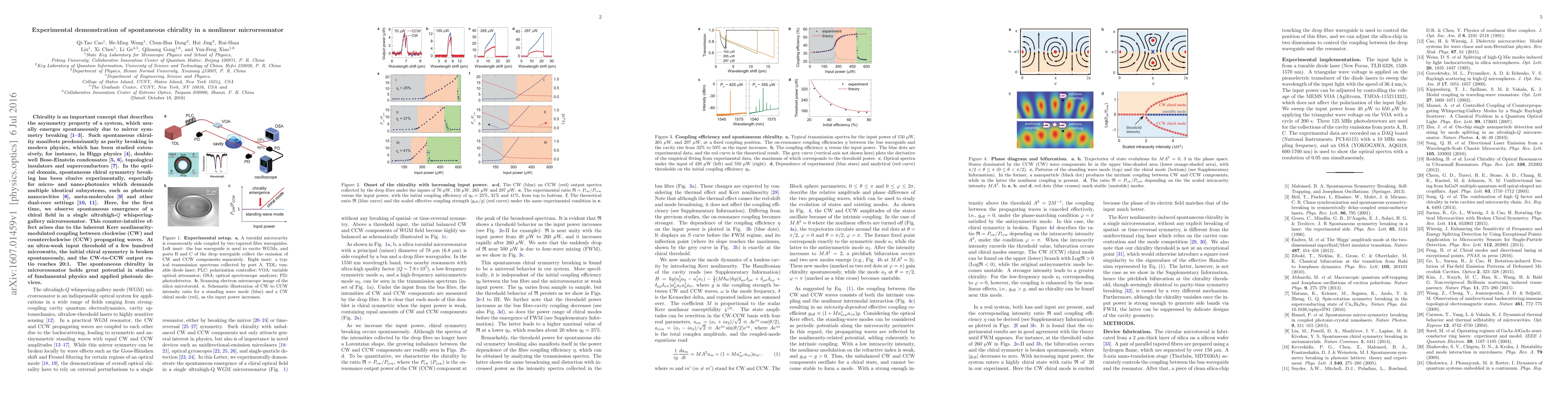 This paper demonstrates the first experimental observation of spontaneous chirality in an ultrahigh-Q whispering-gallery microresonator, driven by Kerr nonlinearity-modulated coupling between clockwise and counterclockwise waves. This breakthrough holds significant potential for fundamental physics studies and photonic devices.