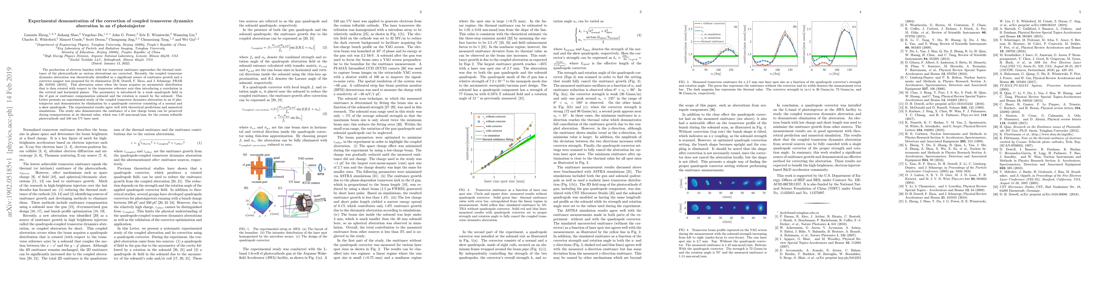 This paper reports an experimental demonstration of correcting coupled transverse dynamics aberration in an rf photoinjector, using a quadrupole corrector. The study shows that the aberration, which causes emittance growth, can be effectively eliminated, preserving the thermal emittance of the electron beam.