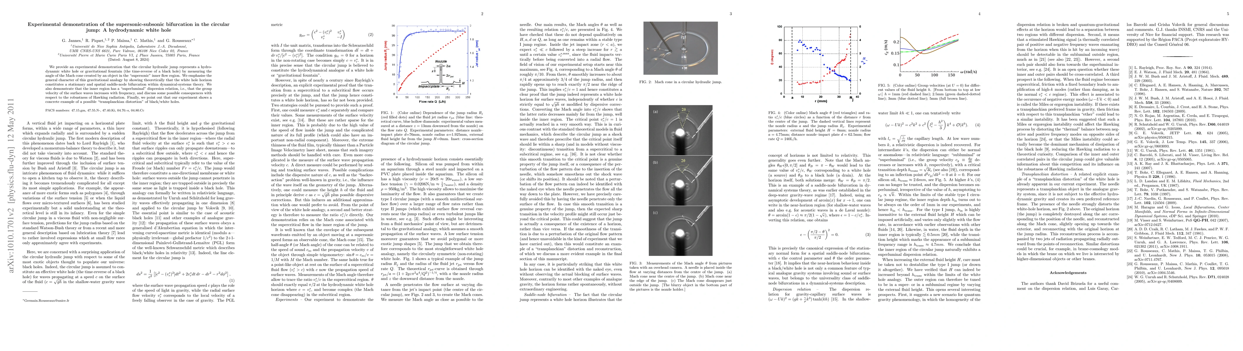 This paper experimentally demonstrates that a circular hydraulic jump acts as a hydrodynamic white hole, analogous to a gravitational fountain. It shows that the white hole horizon corresponds to a stationary saddle-node bifurcation and discusses the "superluminal" dispersion relation in the supersonic inner flow region, hinting at implications for Hawking radiation and transplanckian effects.