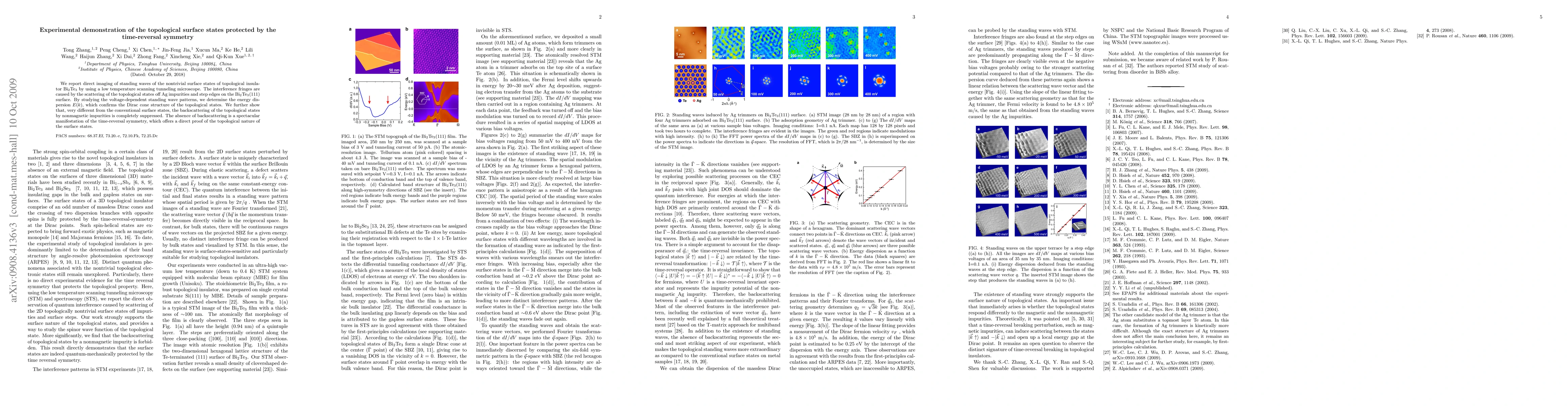 The paper presents a novel experimental approach using low-temperature STM to visualize and analyze topological surface states, providing direct evidence of their protection by time-reversal symmetry.