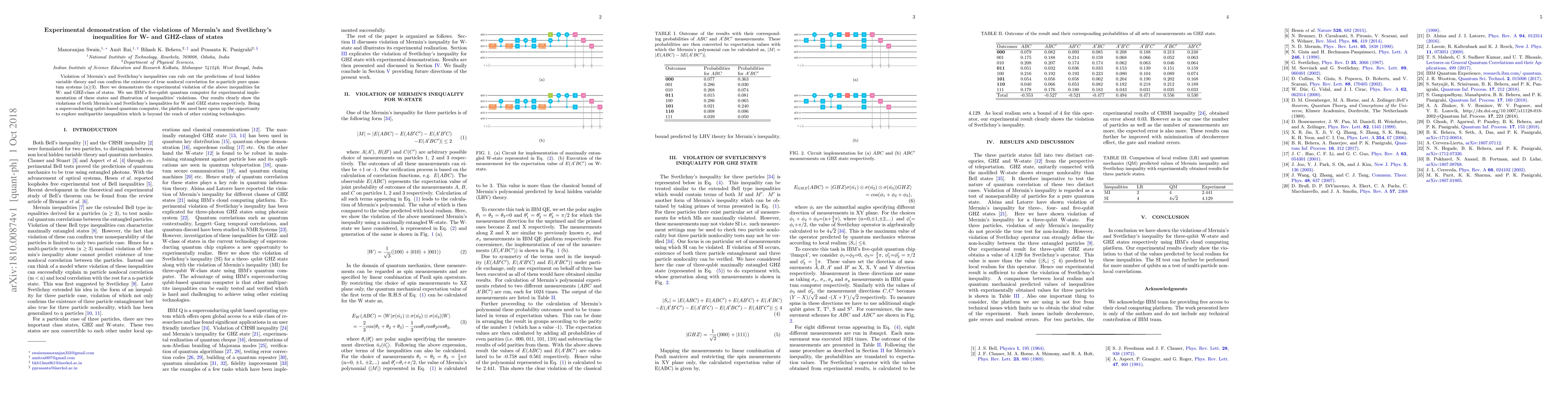 This paper demonstrates experimental violations of Mermin's and Svetlichny's inequalities for W- and GHZ-class quantum states, confirming the existence of true nonlocal correlations and ruling out local hidden variable theories. The study uses IBM's five-qubit superconducting quantum computer to implement these states, showcasing the platform's potential for exploring multipartite inequalities.