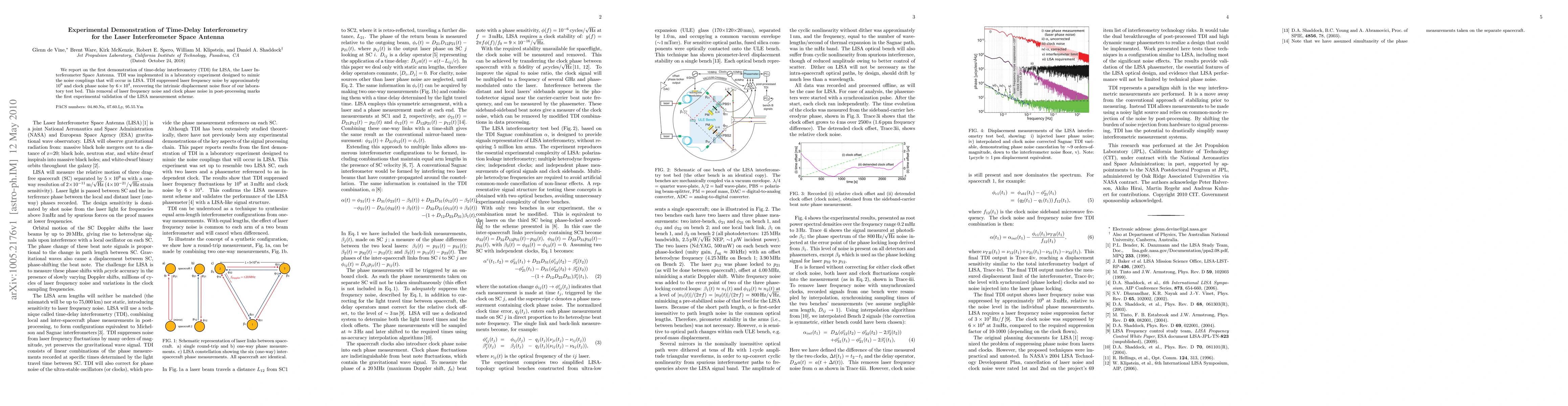 This paper demonstrates the first laboratory implementation of time-delay interferometry (TDI) for the Laser Interferometer Space Antenna (LISA), achieving significant suppression of laser frequency noise and clock phase noise, thus validating LISA's measurement scheme.