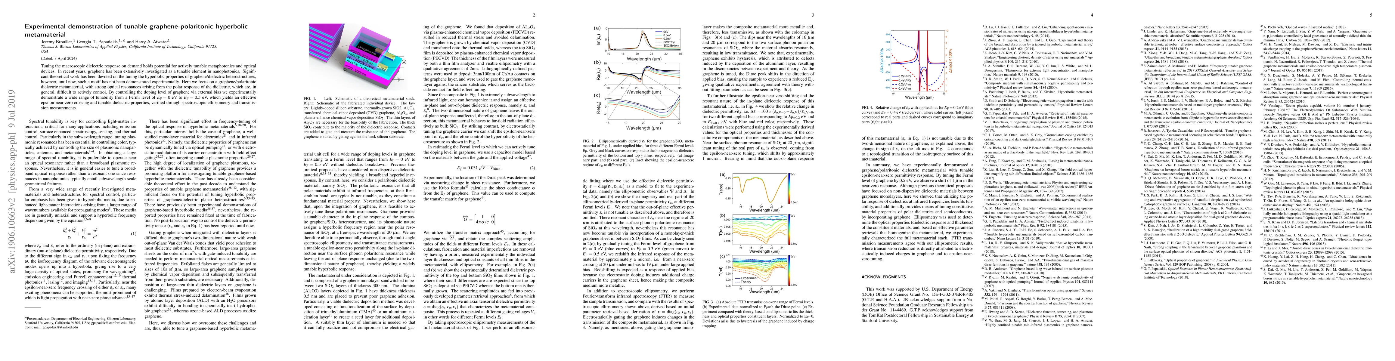 Tuning the macroscopic dielectric response on demand holds potential for actively tunable metaphotonics and optical devices. In recent years, graphene has been extensively investigated as a tunable element in nanophotonics. Significant theoretical work has been devoted on the tuning the hyperbolic properties of graphene/dielectric heterostructures, however, until now, such a motif has not been demonstrated experimentally. Here we focus on a graphene/polaritonic dielectric metamaterial, with strong optical resonances arising from the polar response of the dielectric, which are, in general, difficult to actively control. By controlling the doping level of graphene via external bias we experimentally demonstrate a wide range of tunability from a Fermi level of EF = 0 eV to EF = 0.5 eV, which yields an effective epsilon-near-zero crossing and tunable dielectric properties, verified through spectroscopic ellipsometry and transmission measurements.
