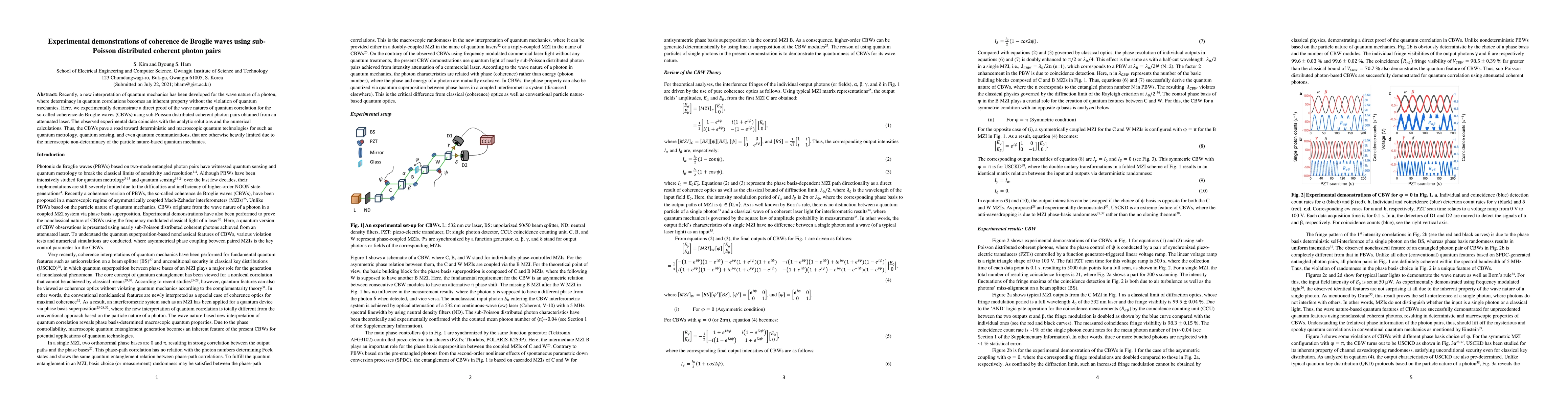 This paper experimentally verifies coherence de Broglie waves (CBWs) using sub-Poisson distributed coherent photon pairs, demonstrating the wave nature of quantum correlations without violating quantum mechanics. The results support the potential for deterministic and macroscopic quantum technologies.