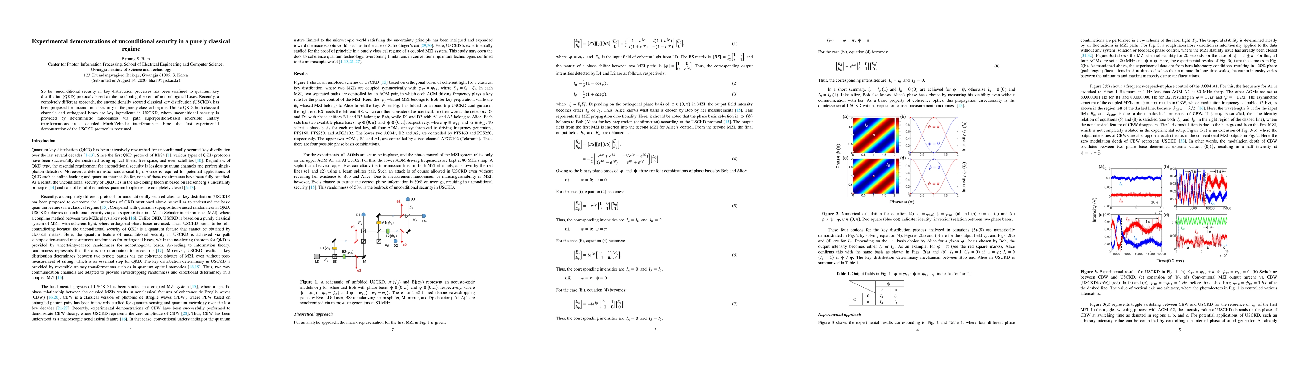 This paper presents the first experimental demonstration of unconditionally secured classical key distribution (USCKD), a novel protocol that achieves security in a purely classical regime using classical channels and orthogonal bases, leveraging deterministic randomness and reversible unitary transformations in a Mach-Zehnder interferometer. This approach offers a new method for secure key distribution without relying on quantum mechanics.
