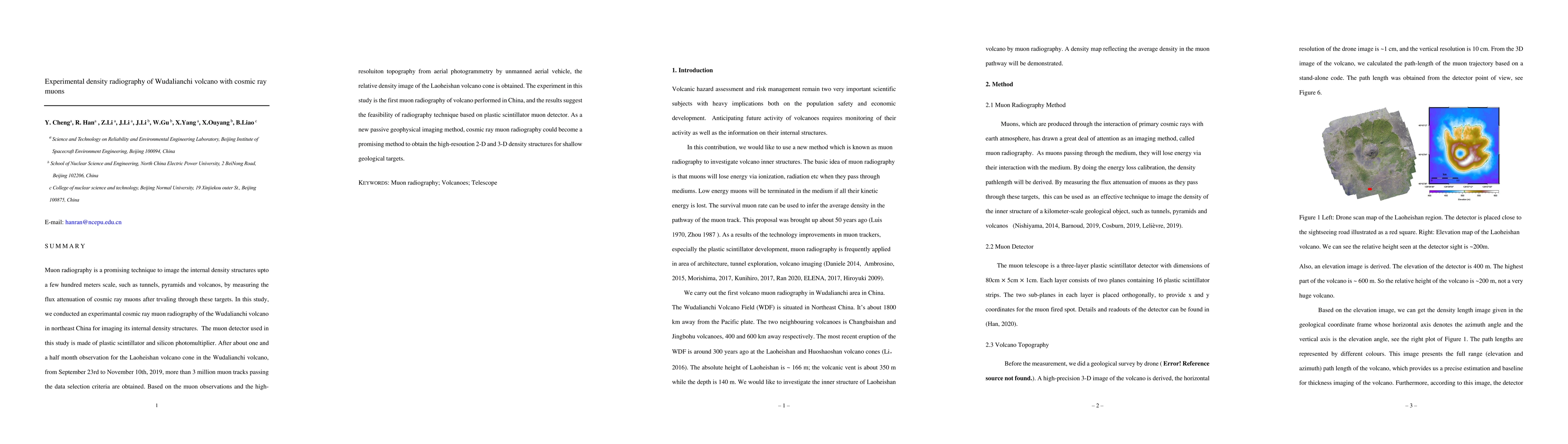 This study conducted the first muon radiography of the Wudalianchi volcano in China using a plastic scintillator and silicon photomultiplier detector, revealing its internal density structures. The results suggest the feasibility of this technique for high-resolution imaging of shallow geological targets.