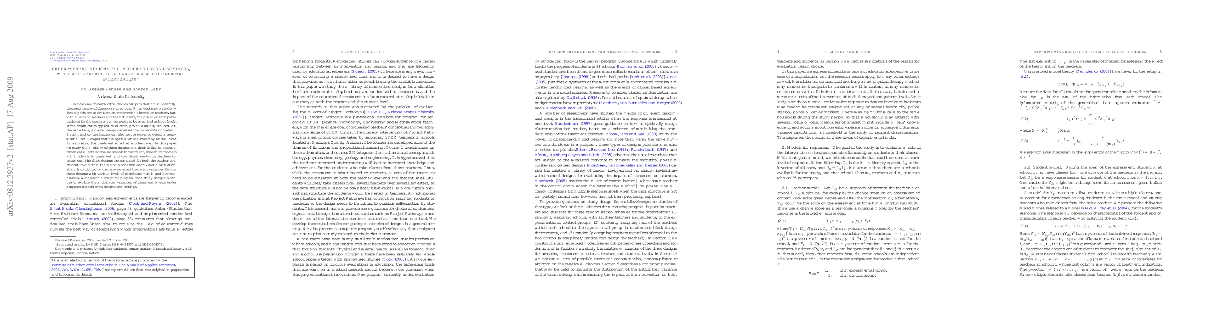 Educational research often studies subjects that are in naturally clustered groups of classrooms or schools. When designing a randomized experiment to evaluate an intervention directed at teachers, but with effects on teachers and their students, the power or anticipated variance for the treatment effect needs to be examined at both levels. If the treatment is applied to clusters, power is usually reduced. At the same time, a cluster design decreases the probability of contamination, and contamination can also reduce power to detect a treatment effect. Designs that are optimal at one level may be inefficient for estimating the treatment effect at another level. In this paper we study the efficiency of three designs and their ability to detect a treatment effect: randomize schools to treatment, randomize teachers within schools to treatment, and completely randomize teachers to treatment. The three designs are compared for both the teacher and student level within the mixed model framework, and a simulation study is conducted to compare expected treatment variances for the three designs with various levels of correlation within and between clusters. We present a computer program that study designers can use to explore the anticipated variances of treatment effects under proposed experimental designs and settings.