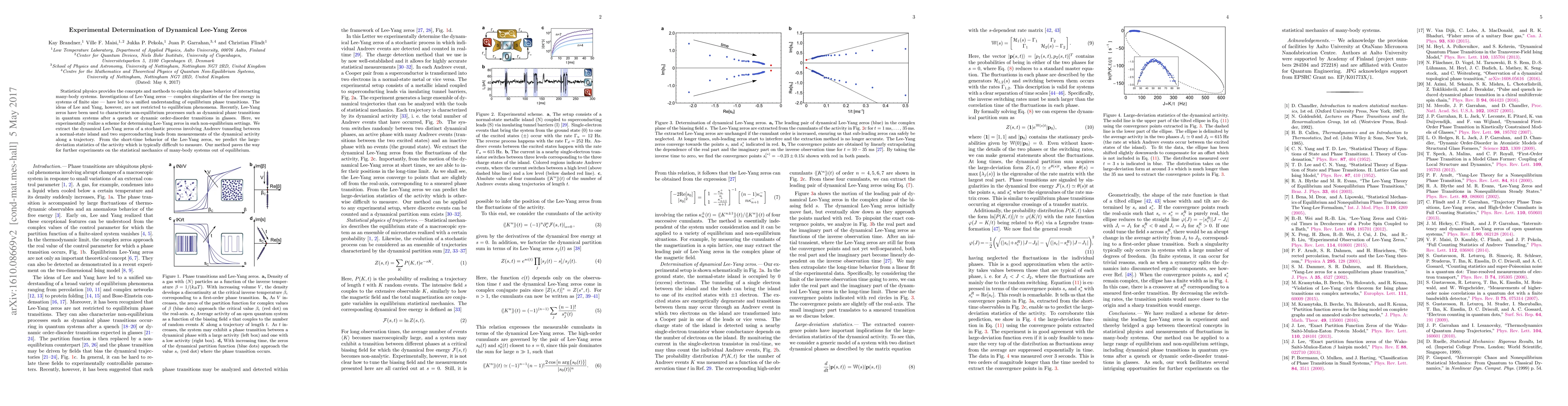 Statistical physics provides the concepts and methods to explain the phase behavior of interacting many-body systems. Investigations of Lee-Yang zeros --- complex singularities of the free energy in systems of finite size --- have led to a unified understanding of equilibrium phase transitions. The ideas of Lee and Yang, however, are not restricted to equilibrium phenomena. Recently, Lee-Yang zeros have been used to characterize non-equilibrium processes such as dynamical phase transitions in quantum systems after a quench or dynamic order-disorder transitions in glasses. Here, we experimentally realize a scheme for determining Lee-Yang zeros in such non-equilibrium settings. We extract the dynamical Lee-Yang zeros of a stochastic process involving Andreev tunneling between a normal-state island and two superconducting leads from measurements of the dynamical activity along a trajectory. From the short-time behavior of the Lee-Yang zeros, we predict the large-deviation statistics of the activity which is typically difficult to measure. Our method paves the way for further experiments on the statistical mechanics of many-body systems out of equilibrium.