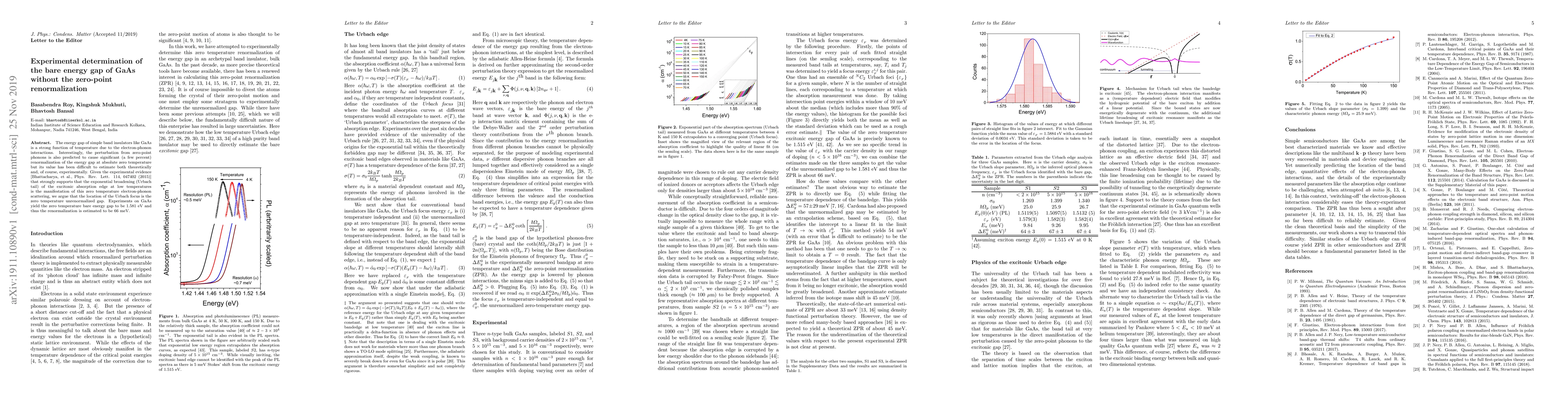 The energy gap of simple band insulators like GaAs is a strong function of temperature due to the electron-phonon interactions. Interestingly, the perturbation from zero-point phonons is also predicted to cause significant (a few percent) renormalization of the energy gap at absolute zero temperature but its value has been difficult to estimate both theoretically and, of course, experimentally. Given the experimental evidence [Bhattacharya, et al., Phys. Rev. Lett. 114, 047402 (2015)] that strongly supports that the exponential broadening (Urbach tail) of the excitonic absorption edge at low temperatures is the manifestation of this zero temperature electron-phonon scattering, we argue that the location of the Urbach focus is the zero temperature unrenormalized gap. Experiments on GaAs yield the zero temperature bare energy gap to be 1.581 eV and thus the renormalization is estimated to be 66 meV.