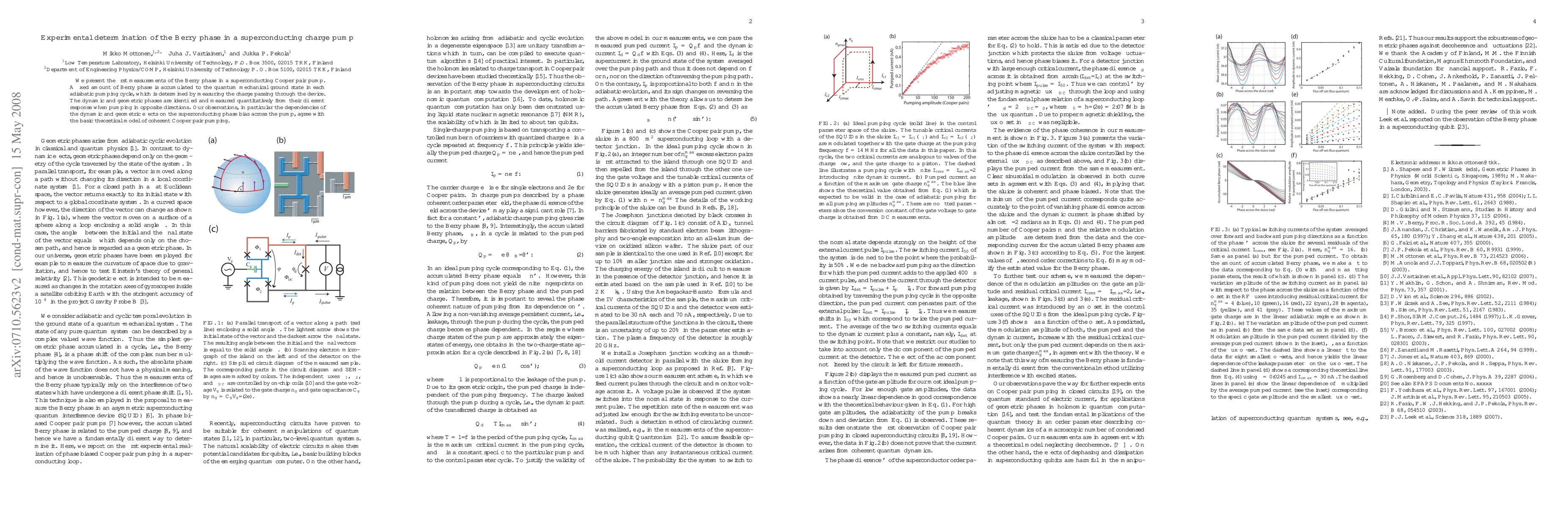 This paper reports the first experimental measurements of the Berry phase in a superconducting Cooper pair pump, demonstrating the accumulation of a fixed Berry phase in each adiabatic cycle. The study quantitatively distinguishes the dynamic and geometric phases and confirms theoretical predictions regarding their dependence on the superconducting phase bias.