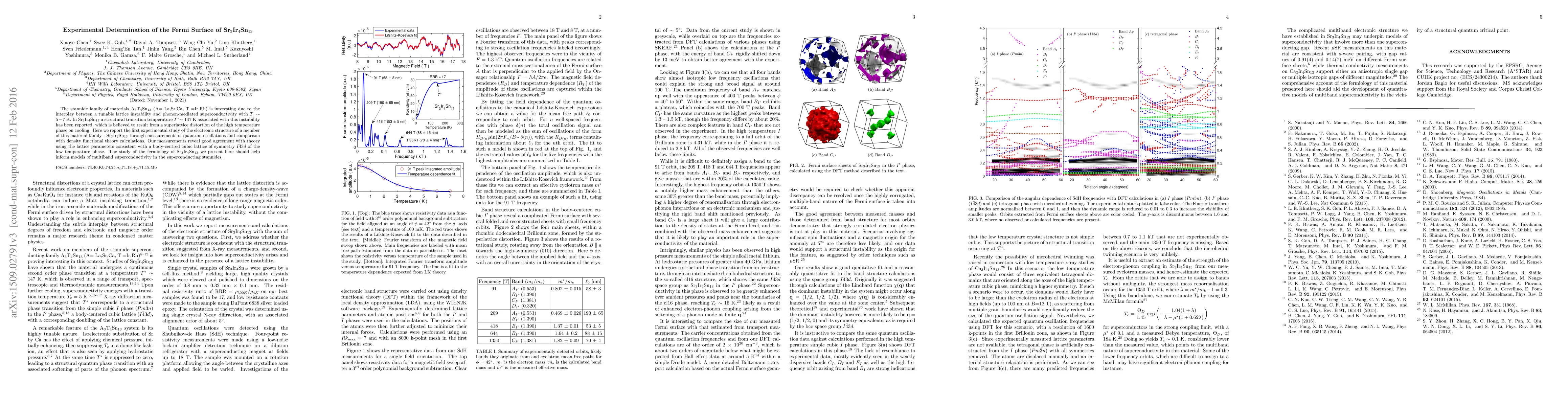 The stannide family of materials A3T4Sn13 (A = La,Sr,Ca, T = Ir,Rh) is interesting due to the interplay between a tunable lattice instability and phonon-mediated superconductivity with Tc ~ 5-7 K. In Sr3Ir4Sn13 a structural transition temperature T* ~ 147 K associated with this instability has been reported, which is believed to result from a superlattice distortion of the high temperature phase on cooling. Here we report the first experimental study of the electronic structure of a member of this material family - Sr3Ir4Sn13 through measurements of quantum oscillations and comparison with density functional theory calculations. Our measurements reveal good agreement with theory using the lattice parameters consistent with a body-centred cubic lattice of symmetry I-43d of the low temperature phase. The study of the fermiology of Sr3Ir4Sn13 we present here should help inform models of multiband superconductivity in the superconducting stannides.