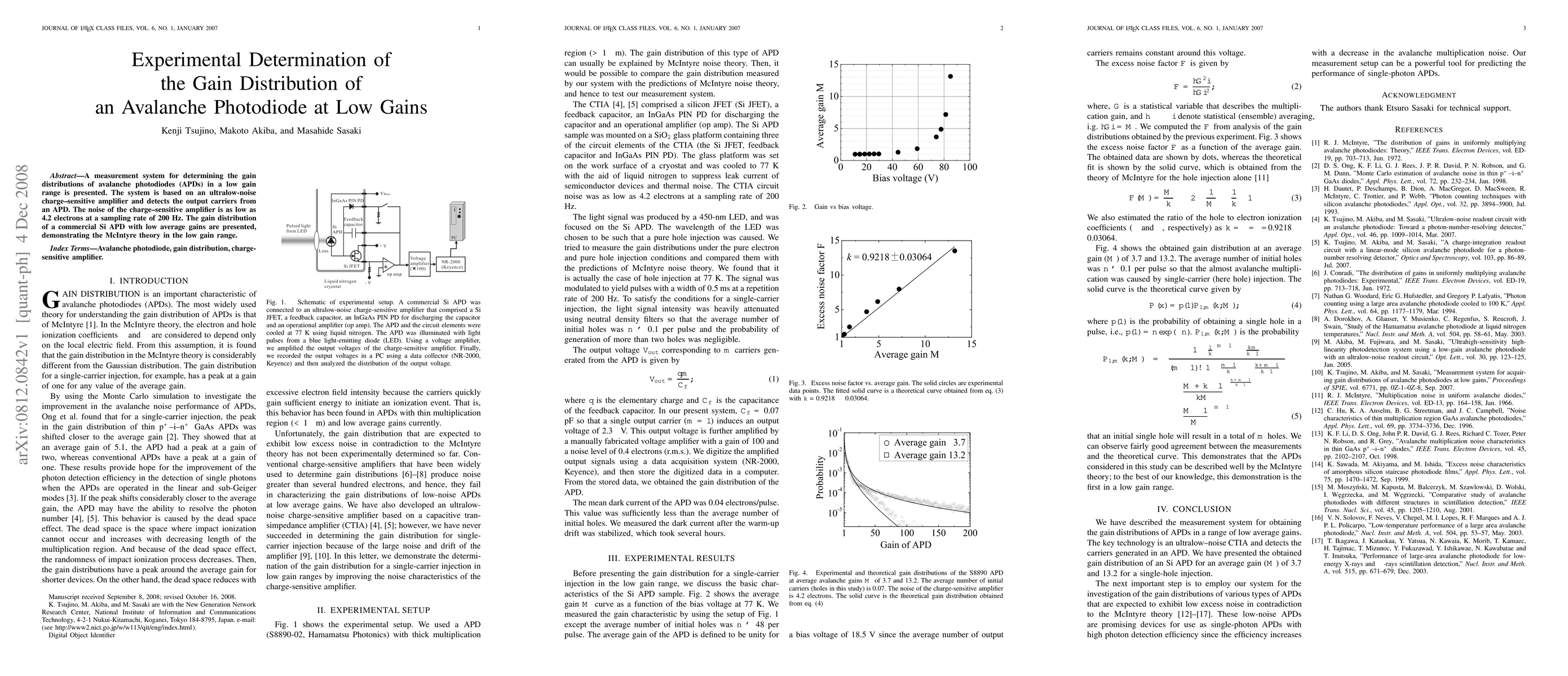Researchers develop a measurement system to study the gain distribution of avalanche photodiodes in low-gain ranges. They successfully measure the gain distribution of a commercial Si APD, validating the McIntyre theory at these low gains.