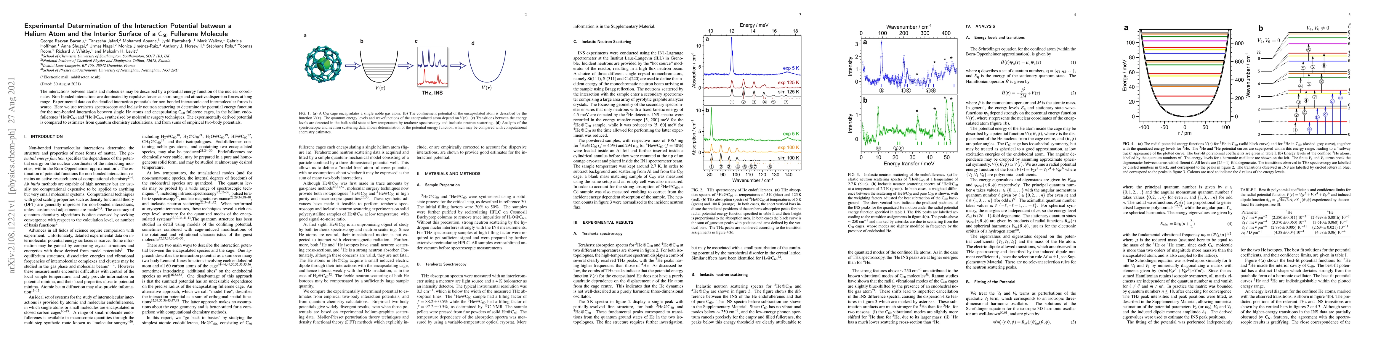 The interactions between atoms and molecules may be described by a potential energy function of the nuclear coordinates. Non-bonded interactions are dominated by repulsive forces at short range and attractive dispersion forces at long range. Experimental data on the detailed interaction potentials for non-bonded interatomic and intermolecular forces is scarce. Here we use terahertz spectroscopy and inelastic neutron scattering to determine the potential energy function for the non-bonded interaction between single He atoms and encapsulating C60 fullerene cages, in the helium endofullerenes 3He and 4He, synthesised by molecular surgery techniques. The experimentally derived potential is compared to estimates from quantum chemistry calculations, and from sums of empirical two-body potentials.