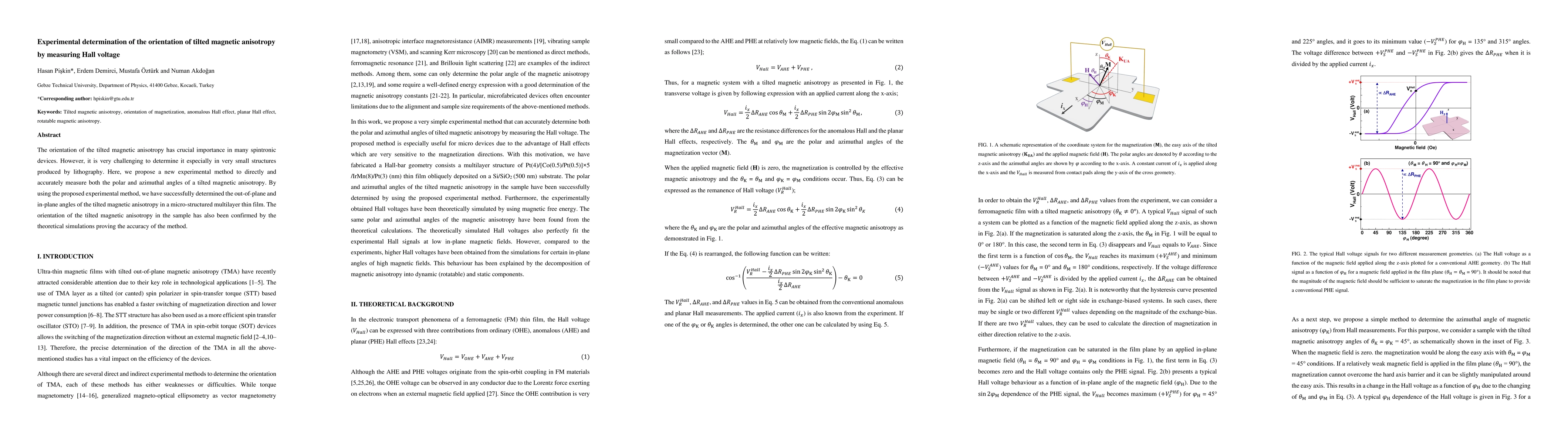 The orientation of the tilted magnetic anisotropy has crucial importance in many spintronic devices. However, it is very challenging to determine it especially in very small structures produced by lithography. Here, we propose a new experimental method to directly and accurately measure both the polar and azimuthal angles of a tilted magnetic anisotropy. By using the proposed experimental method, we have successfully determined the out-of-plane and in-plane angles of the tilted magnetic anisotropy in a micro-structured multilayer thin film. The orientation of the tilted magnetic anisotropy in the sample has also been confirmed by the theoretical simulations proving the accuracy of the method.