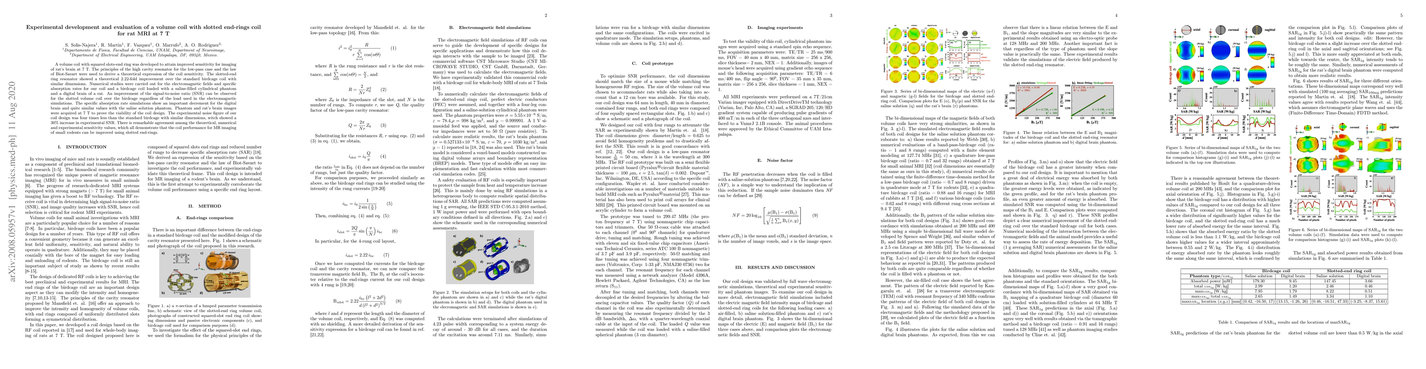 This paper details the development of a volume coil with slotted end-rings for enhanced sensitivity in rat brain MRI at 7 T, showing a theoretical and experimental 2.22-fold improvement over standard birdcage coils. The design demonstrates a significant increase in signal-to-noise ratio and reduced specific absorption rates, validated by both numerical simulations and experimental results.
