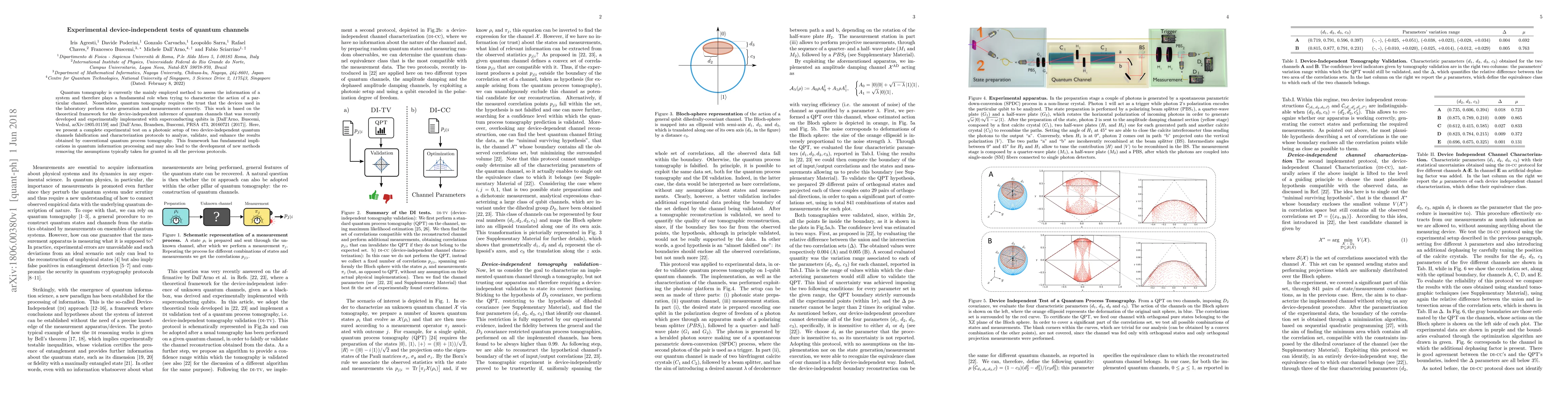 This paper presents experimental device-independent tests of quantum channels using a photonic setup, aiming to validate and enhance conventional quantum process tomography. The results have significant implications for quantum information processing by potentially developing new methods that do not rely on device assumptions.