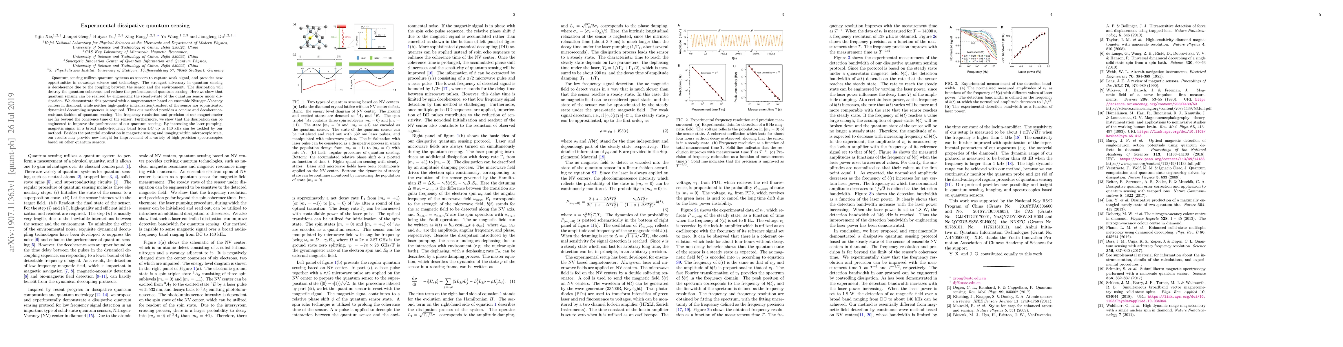 Quantum sensing utilizes quantum systems as sensors to capture weak signal, and provides new opportunities in nowadays science and technology. The strongest adversary in quantum sensing is decoherence due to the coupling between the sensor and the environment. The dissipation will destroy the quantum coherence and reduce the performance of quantum sensing. Here we show that quantum sensing can be realized by engineering the steady-state of the quantum sensor under dissipation. We demonstrate this protocol with a magnetometer based on ensemble Nitrogen-Vacancy centers in diamond, while neither high-quality initialization/readout of the sensor nor sophisticated dynamical decoupling sequences is required. Thus our method provides a concise and decoherence-resistant fashion of quantum sensing. The frequency resolution and precision of our magnetometer are far beyond the coherence time of the sensor. Furthermore, we show that the dissipation can be engineered to improve the performance of our quantum sensing. By increasing the laser pumping, magnetic signal in a broad audio-frequency band from DC up to 140 kHz can be tackled by our method. Besides the potential application in magnetic sensing and imaging within microscopic scale, our results may provide new insight for improvement of a variety of high-precision spectroscopies based on other quantum sensors.