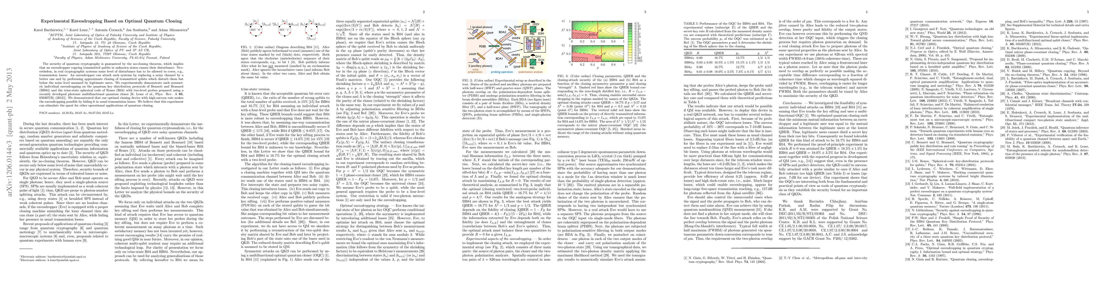 The security of quantum cryptography is guaranteed by the no-cloning theorem, which implies that an eavesdropper copying transmitted qubits in unknown states causes their disturbance. Nevertheless, in real cryptographic systems some level of disturbance has to be allowed to cover, e.g., transmission losses. An eavesdropper can attack such systems by replacing a noisy channel by a better one and by performing approximate cloning of transmitted qubits which disturb them but below the noise level assumed by legitimate users. We experimentally demonstrate such symmetric individual eavesdropping on the quantum key distribution protocols of Bennett and Brassard (BB84) and the trine-state spherical code of Renes (R04) with two-level probes prepared using a recently developed photonic multifunctional quantum cloner [K. Lemr et al., Phys. Rev. A 85, 050307(R) (2012)]. We demonstrated that our optimal cloning device with high-success rate makes the eavesdropping possible by hiding it in usual transmission losses. We believe that this experiment can stimulate the quest for other operational applications of quantum cloning.