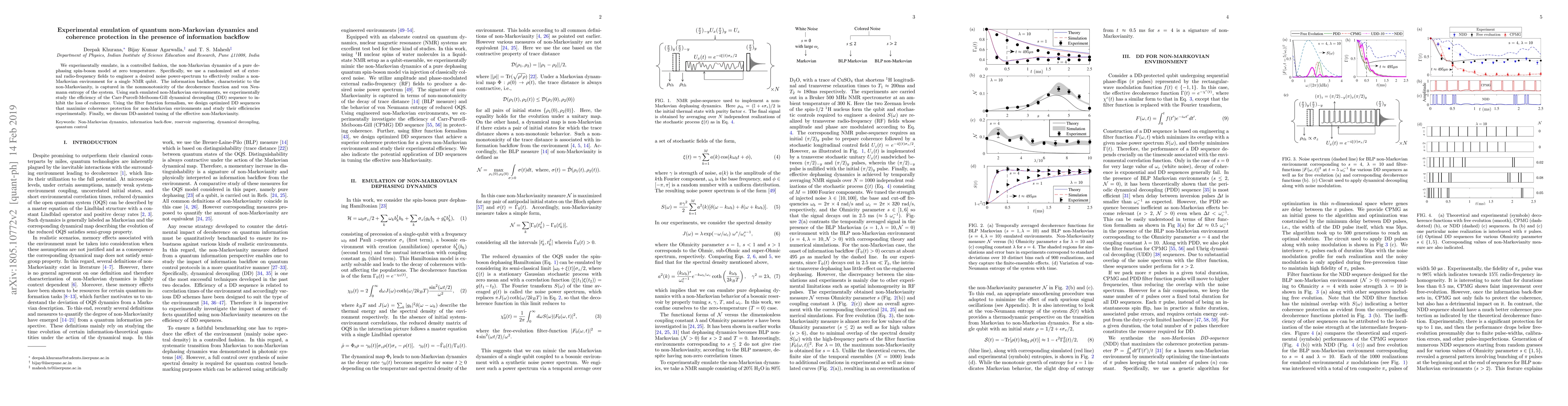 This paper experimentally emulates non-Markovian dynamics in a single NMR qubit using tailored radio-frequency fields, demonstrating coherence protection through optimized dynamical decoupling sequences. The study highlights the role of information backflow in non-Markovianity and its impact on coherence preservation.