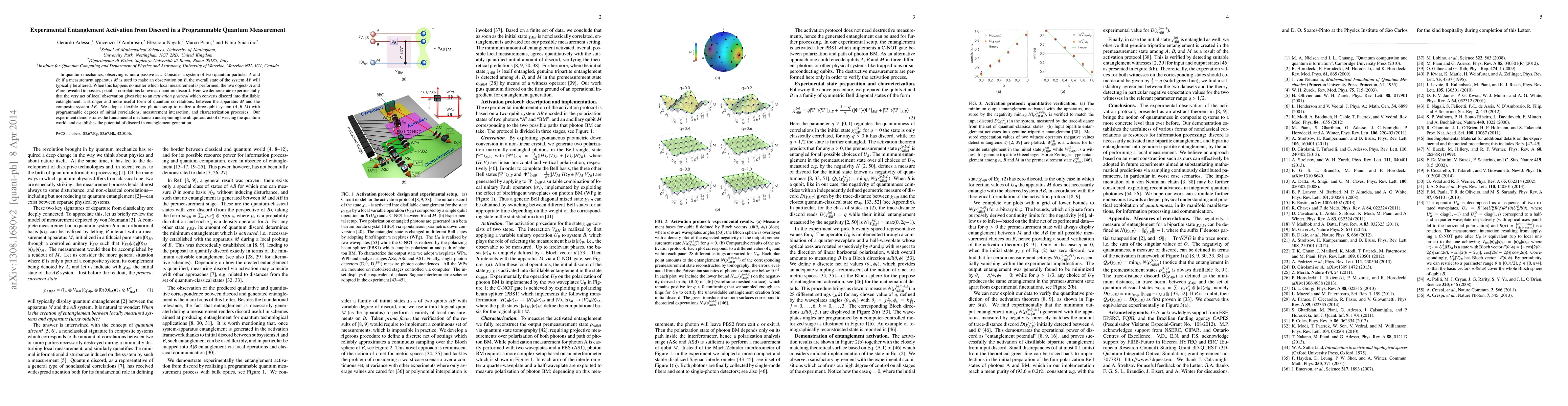 In quantum mechanics, observing is not a passive act. Consider a system of two quantum particles A and B: if a measurement apparatus M is used to make an observation on B, the overall state of the system AB will typically be altered. When this happens no matter which local measurement is performed, the two objects A and B are revealed to possess peculiar correlations known as quantum discord. Here we demonstrate experimentally that the very act of local observation gives rise to an activation protocol which converts discord into distillable entanglement, a stronger and more useful form of quantum correlations, between the apparatus M and the composite system AB. We adopt a flexible two-photon setup to realize a three-qubit system (A,B,M) with programmable degrees of initial correlations, measurement interaction, and characterization processes. Our experiment demonstrates the fundamental mechanism underpinning the ubiquitous act of observing the quantum world, and establishes the potential of discord in entanglement generation.