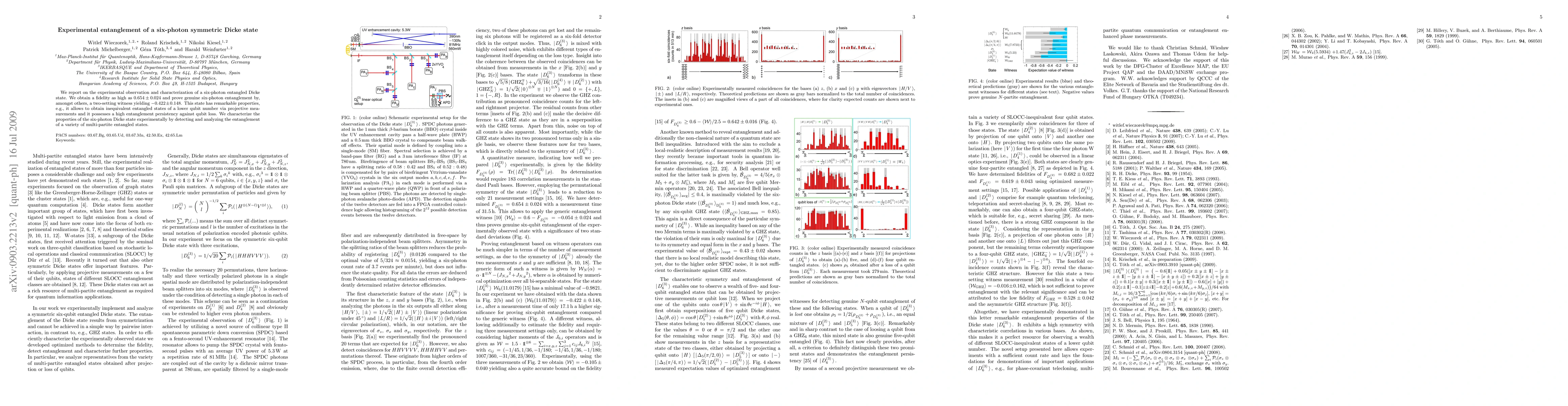 This paper reports the experimental observation of a six-photon entangled Dicke state with high fidelity and genuine six-photon entanglement, demonstrating its robustness against qubit loss and ability to generate lower qubit entangled states via projective measurements. The study characterizes the state's properties through detailed entanglement analysis.