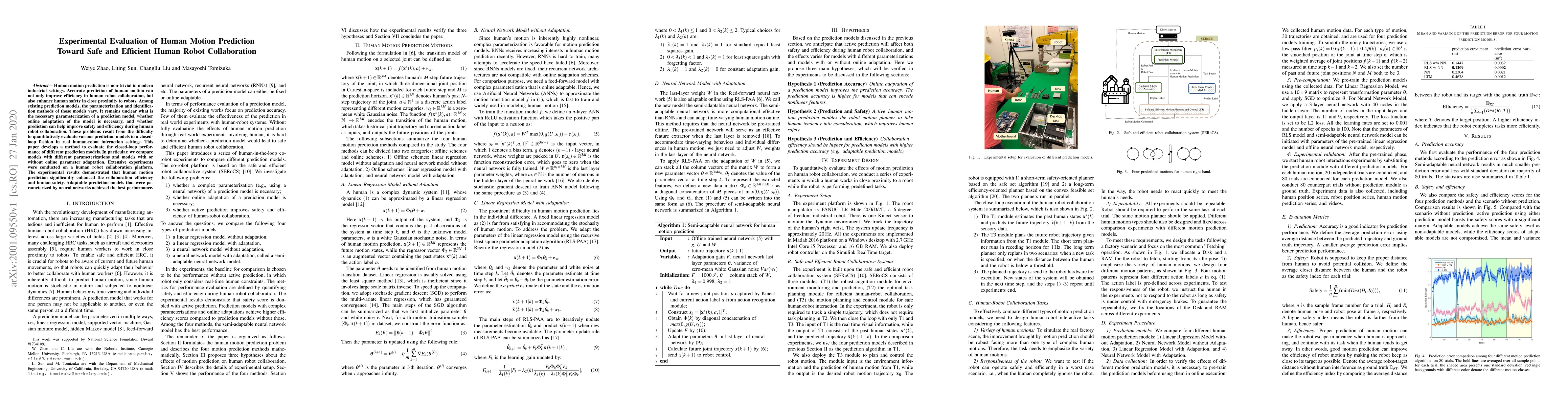 This paper evaluates various human motion prediction models to enhance efficiency and safety in human-robot collaboration. Experiments on a collaboration platform showed that adaptable neural network-based models significantly improved both efficiency and safety.