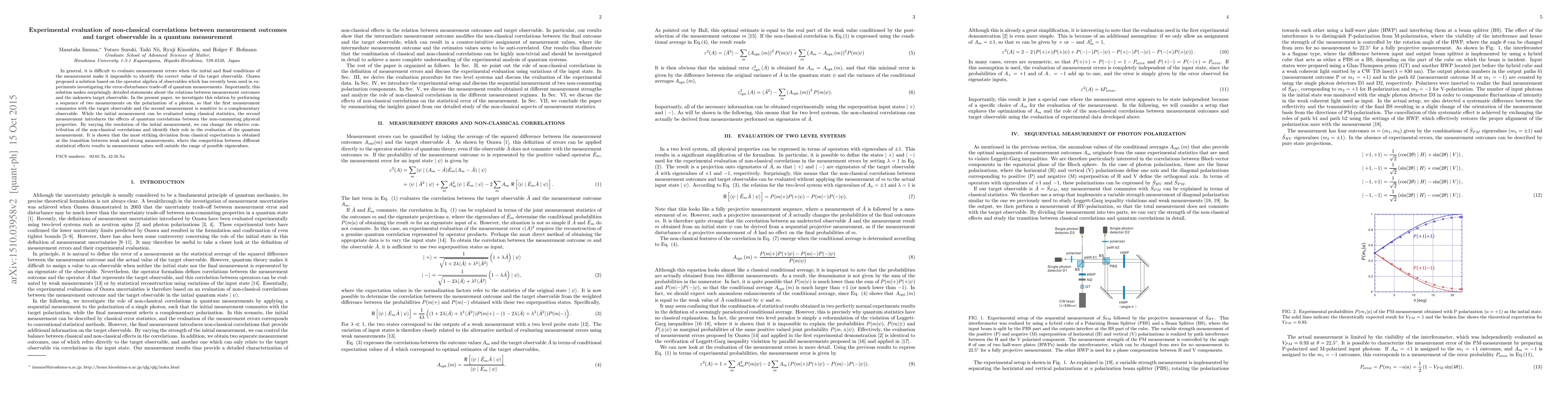 In general, it is difficult to evaluate measurement errors when the initial and final conditions of the measurement make it impossible to identify the correct value of the target observable. Ozawa proposed a solution based on the operator algebra of observables which has recently been used in experiments investigating the error-disturbance trade-off of quantum measurements. Importantly, this solution makes surprisingly detailed statements about the relations between measurement outcomes and the unknown target observable. In the present paper, we investigate this relation by performing a sequence of two measurements on the polarization of a photon, so that the first measurement commutes with the target observable and the second measurement is sensitive to a complementary observable. While the initial measurement can be evaluated using classical statistics, the second measurement introduces the effects of quantum correlations between the non-commuting physical properties. By varying the resolution of the initial measurement, we can change the relative contribution of the non-classical correlations and identify their role in the evaluation of the quantum measurement. It is shown that the most striking deviation from classical expectations is obtained at the transition between weak and strong measurements, where the competition between different statistical effects results in measurement values well outside the range of possible eigenvalues.