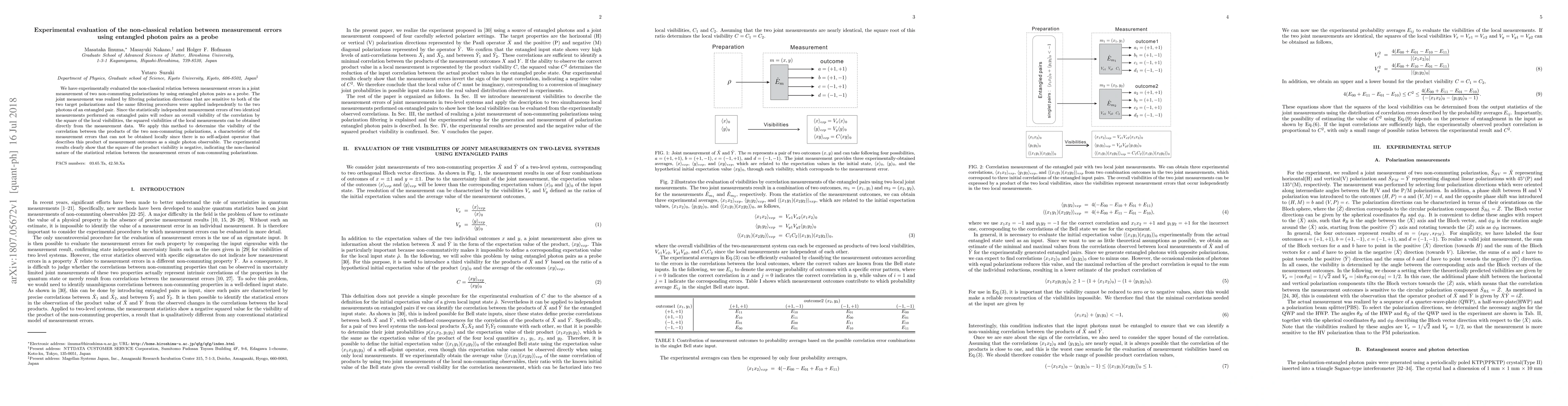 This paper experimentally evaluates the non-classical relationship between measurement errors using entangled photon pairs, revealing that the square of the product visibility is negative, indicating a non-classical statistical relation between errors in non-commuting polarizations.