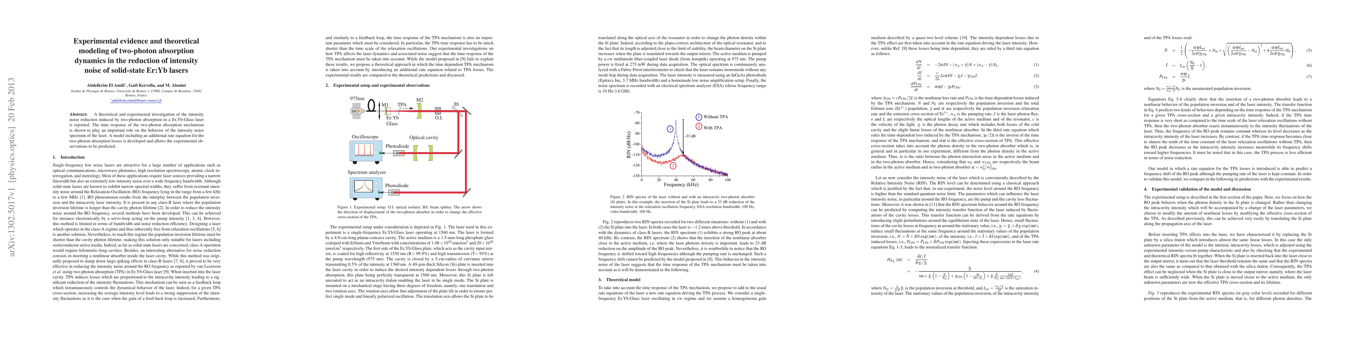 A theoretical and experimental investigation of the intensity noise reduction induced by two-photon absorption in a Er,Yb:Glass laser is reported. The time response of the two-photon absorption mechanism is shown to play an important role on the behavior of the intensity noise spectrum of the laser. A model including an additional rate equation for the two-photon-absorption losses is developed and allows the experimental observations to be predicted.