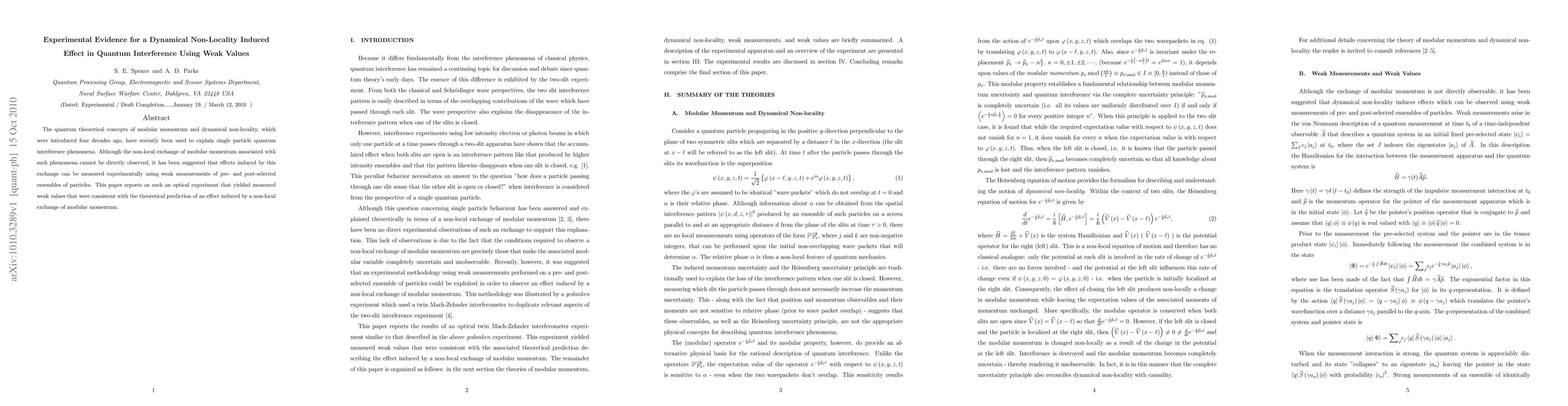 The quantum theoretical concepts of modular momentum and dynamical non-locality, which were introduced four decades ago, have recently been used to explain single particle quantum interference phenomena. Although the non-local exchange of modular momentum associated with such phenomena cannot be directly observed, it has been suggested that effects induced by this exchange can be measured experimentally using weak measurements of pre- and post-selected ensembles of particles. This paper reports on such an optical experiment that yielded measured weak values that were consistent with the theoretical prediction of an effect induced by a non-local exchange of modular momentum.
