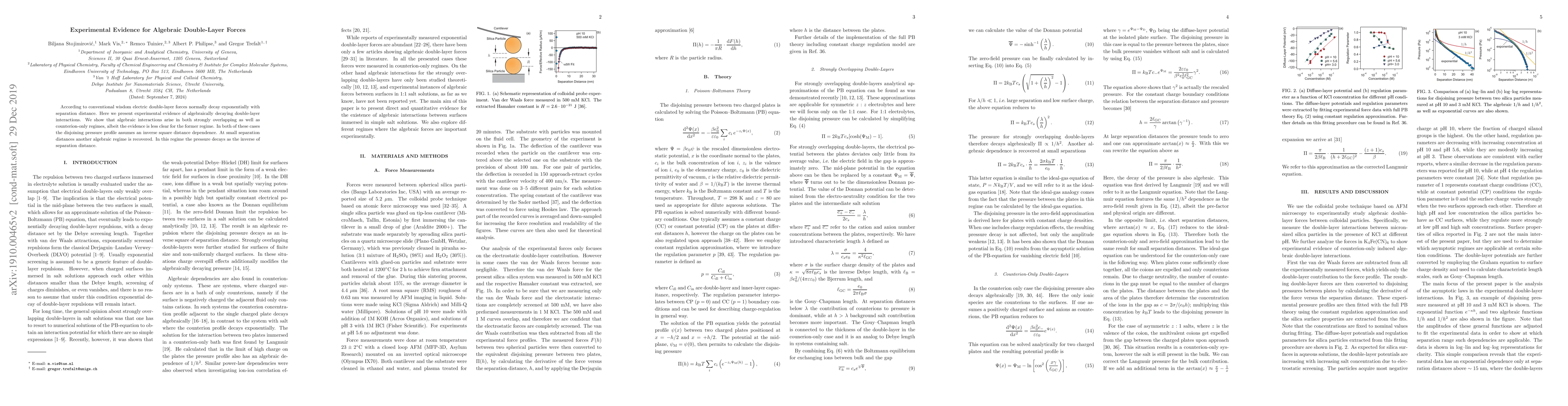 This research presents experimental evidence challenging the conventional view of electric double-layer forces decaying exponentially with distance. The study finds algebraic decay in both strongly overlapping and counterion-only regimes, with disjoining pressure profiles assuming inverse square distance dependence at larger separations, and inverse distance decay at smaller separations.