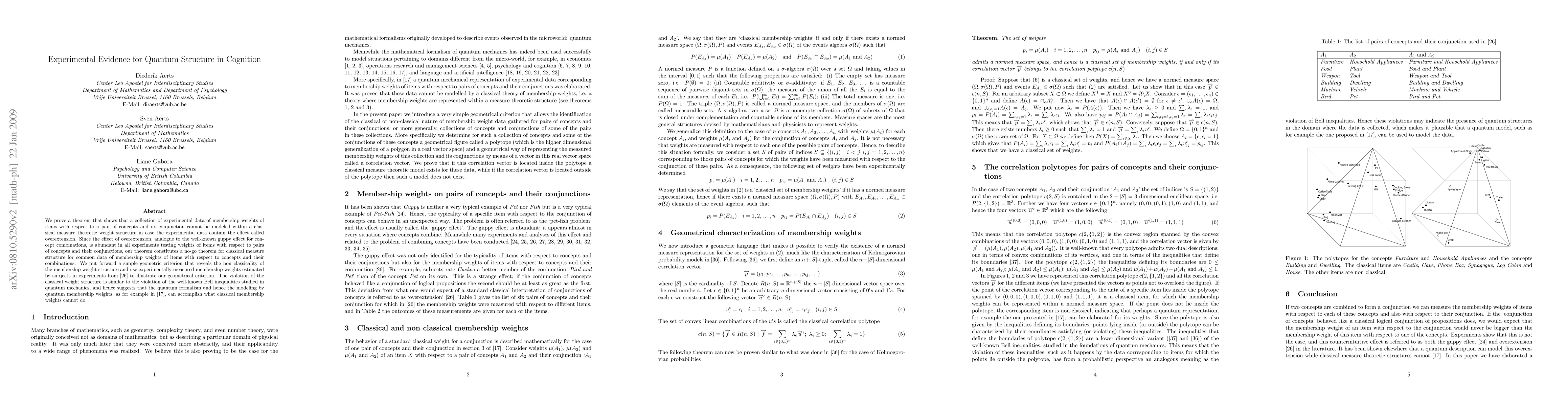 We proof a theorem that shows that a collection of experimental data of membership weights of items with respect to a pair of concepts and its conjunction cannot be modeled within a classical measure theoretic weight structure in case the experimental data contain the effect called overextension. Since the effect of overextension, analogue to the well-known guppy effect for concept combinations, is abundant in all experiments testing weights of items with respect to pairs of concepts and their conjunctions, our theorem constitutes a no-go theorem for classical measure structure for common data of membership weights of items with respect to concepts and their combinations. We put forward a simple geometric criterion that reveals the non classicality of the membership weight structure and use experimentally measured membership weights estimated by subjects in experiments to illustrate our geometrical criterion. The violation of the classical weight structure is similar to the violation of the well-known Bell inequalities studied in quantum mechanics, and hence suggests that the quantum formalism and hence the modeling by quantum membership weights can accomplish what classical membership weights cannot do.