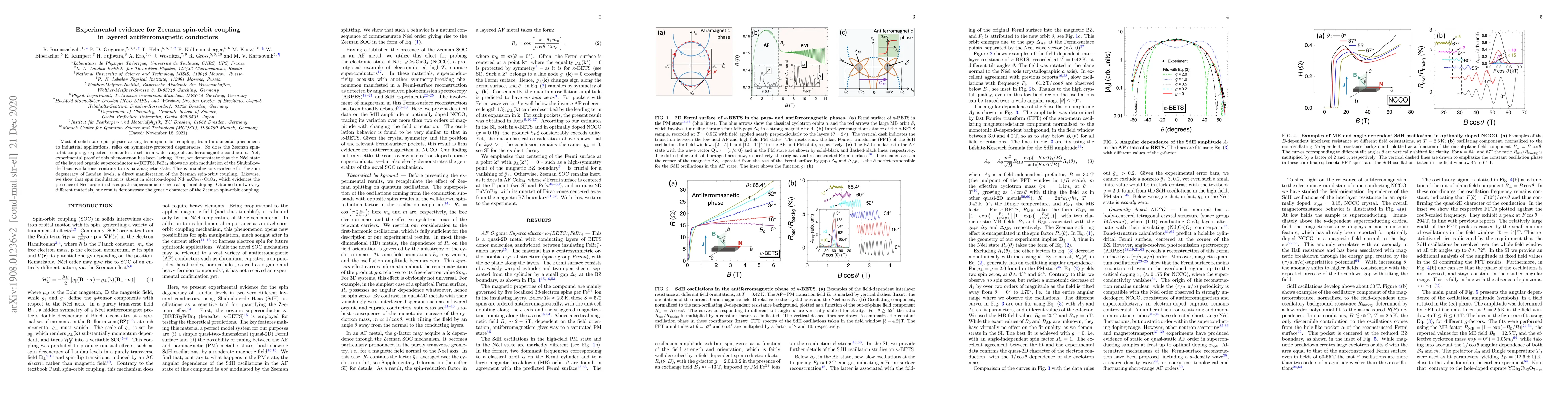 Most of solid-state spin physics arising from spin-orbit coupling, from fundamental phenomena to industrial applications, relies on symmetry-protected degeneracies. So does the Zeeman spin-orbit coupling, expected to manifest itself in a wide range of antiferromagnetic conductors. Yet, experimental proof of this phenomenon has been lacking. Here, we demonstrate that the N\'eel state of the layered organic superconductor $\kappa$-(BETS)$_2$FeBr$_4$ shows no spin modulation of the Shubnikov-de Haas oscillations, contrary to its paramagnetic state. This is unambiguous evidence for the spin degeneracy of Landau levels, a direct manifestation of the Zeeman spin-orbit coupling. Likewise, we show that spin modulation is absent in electron-doped Nd$_{1.85}$Ce$_{0.15}$CuO$_4$, which evidences the presence of N\'eel order in this cuprate superconductor even at optimal doping. Obtained on two very different materials, our results demonstrate the generic character of the Zeeman spin-orbit coupling.
