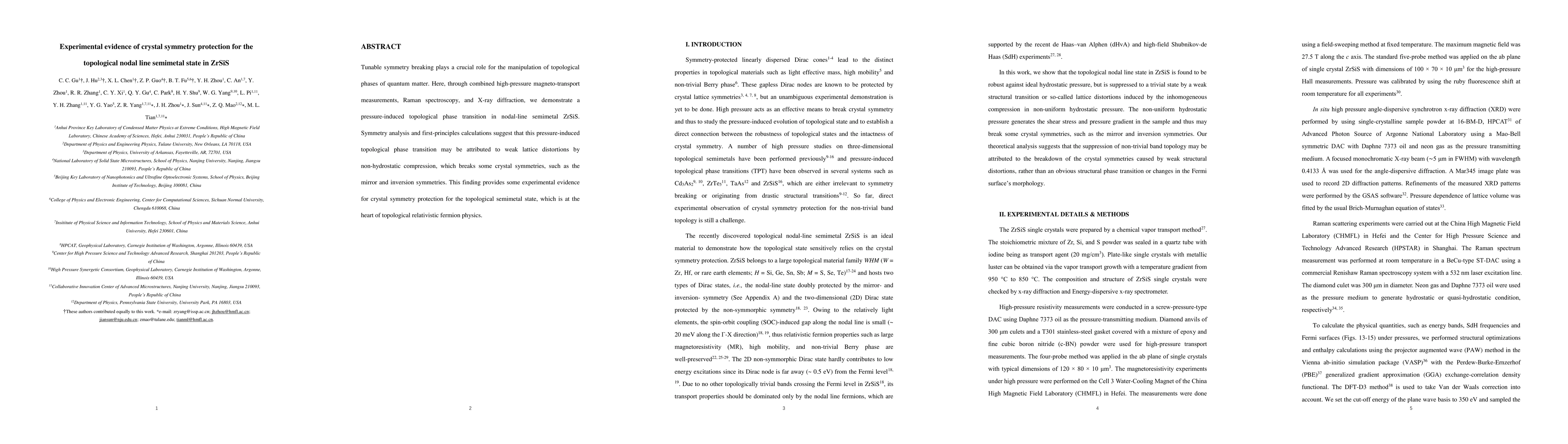 This paper demonstrates a pressure-induced topological phase transition in the nodal-line semimetal ZrSiS through high-pressure experiments and symmetry analysis, showing that lattice distortions break certain crystal symmetries. The findings provide experimental evidence for the crystal symmetry protection of topological semimetal states.