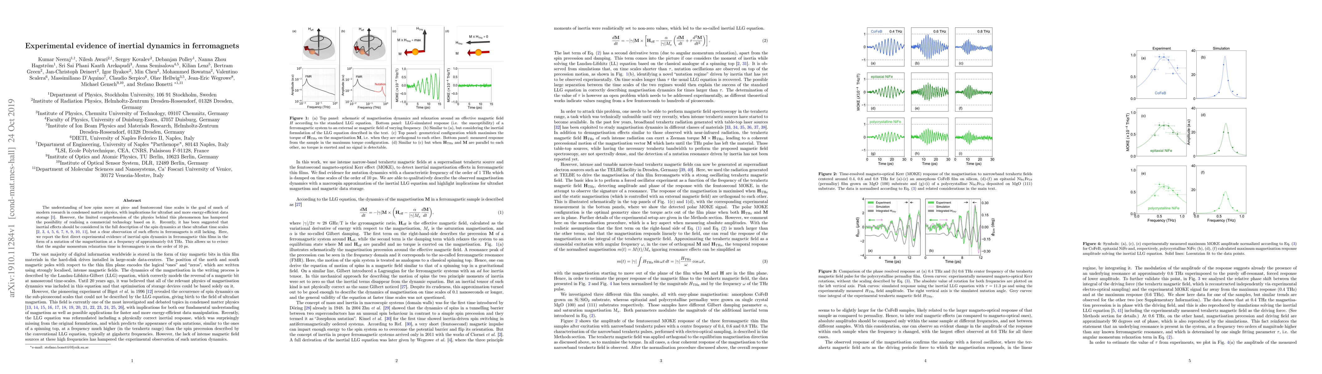 This research paper presents the first direct experimental evidence of inertial spin dynamics in ferromagnetic thin films, demonstrating a nutation of magnetization at 0.6 THz. This finding highlights that angular momentum relaxation time in ferromagnets is approximately 10 picoseconds, supporting the consideration of inertial effects in ultrafast spin dynamics.